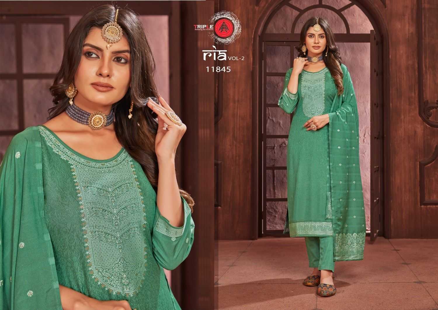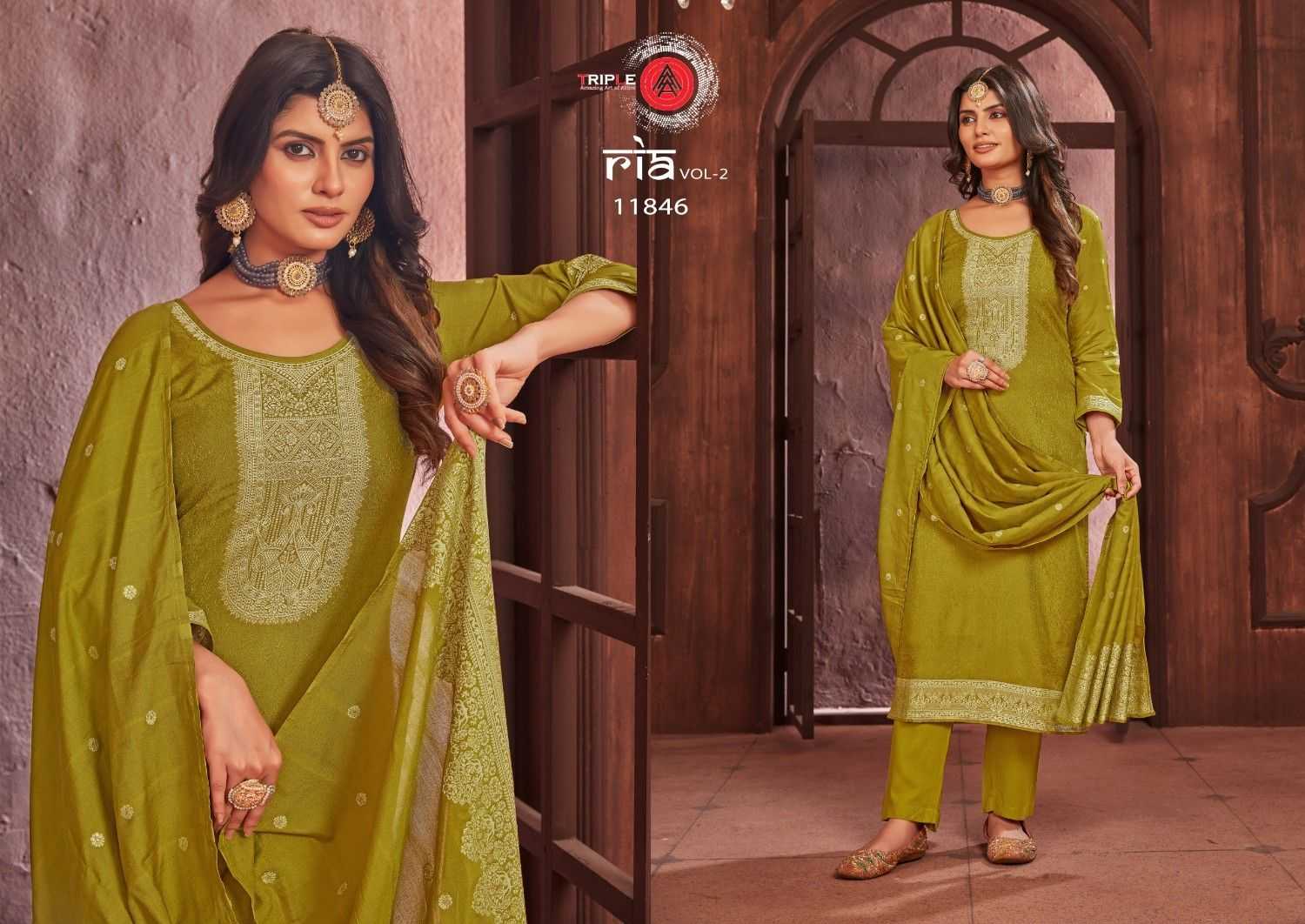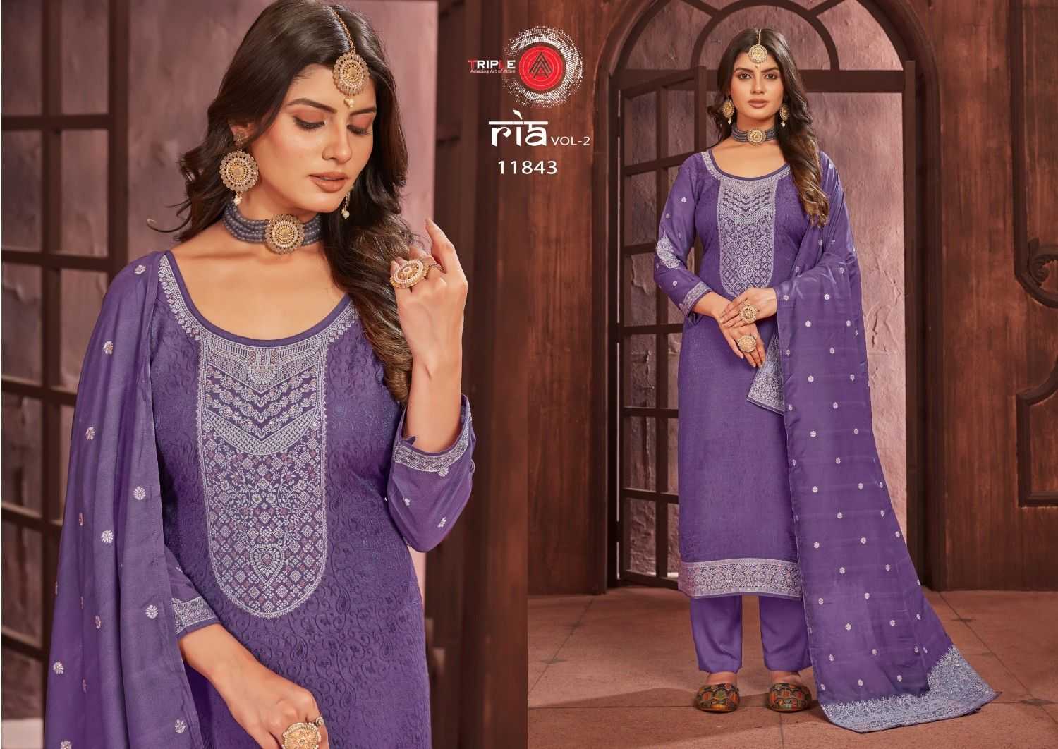 ria vol 2 by triple a muslin designer weaving lakhnavi work unstitch salwar suit