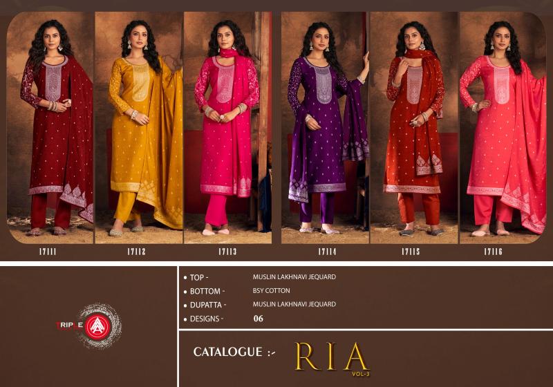 ria vol 3 by triple a muslin lakhnavi jacquard classic dress material