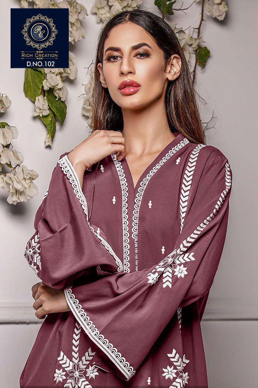 Rich Creation Presents Latest Collection Launched on 25-01-2022. Presenting Beautiful collection of 2 PCS with Full Stitched XL .