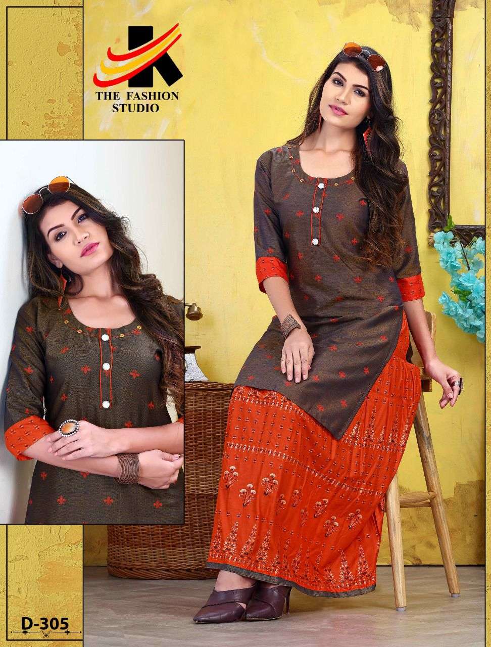 Rich Girl Vol.2 By The Fashion Studio Heavy Rayon With Foil Print Kurti With Skirt Catlog Collection