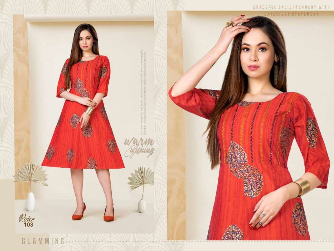 RIDER BY BEAUTY QUEEN HEAVY CHANDERI PRINT KURTI CATALOG WHOLESALER BEST RATE