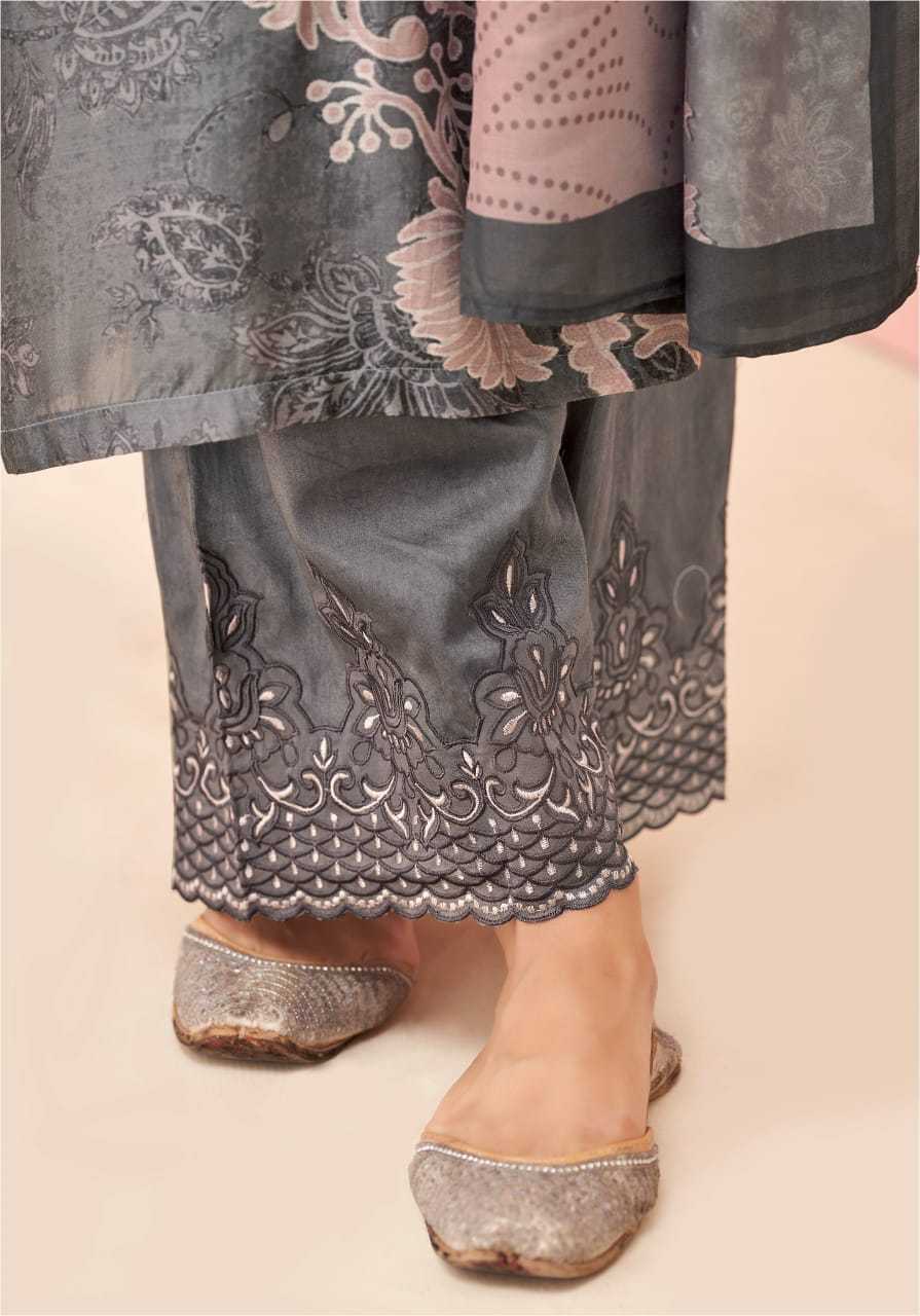 SAHIBA TOP - UNIQUE MUSLIN SILK DIGITAL PRINT WITH EMBROIDERY AND ORGANZA SILK DYED BUTTA PATCH WITH THREADLE DAMAN AND SLEEVE CHEMICAL LACE BOTTOM - MULBERRY SATIN DUPATTA - MUSLIN SILK DIGITAL PRINTED DUPATTA RATE: |