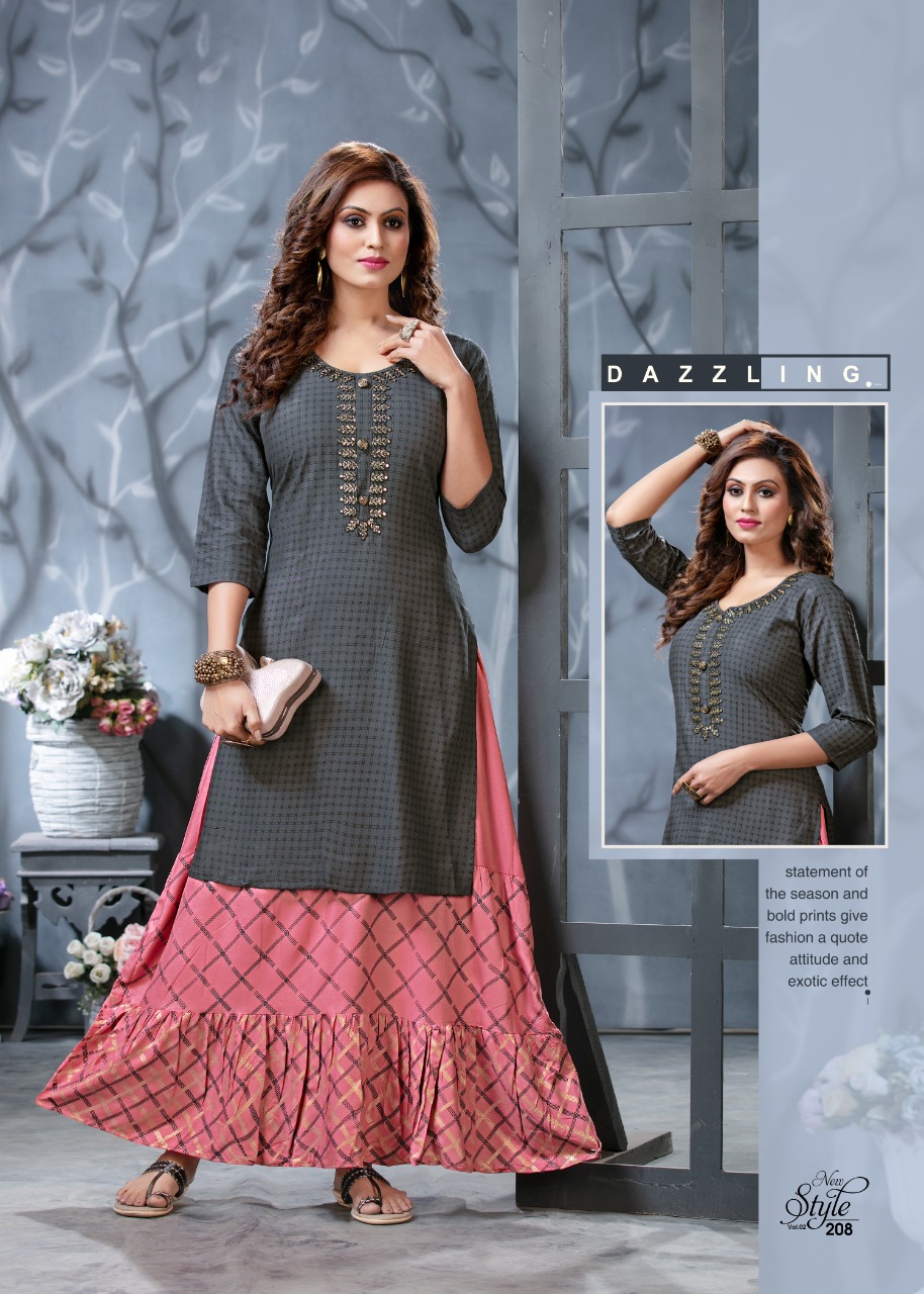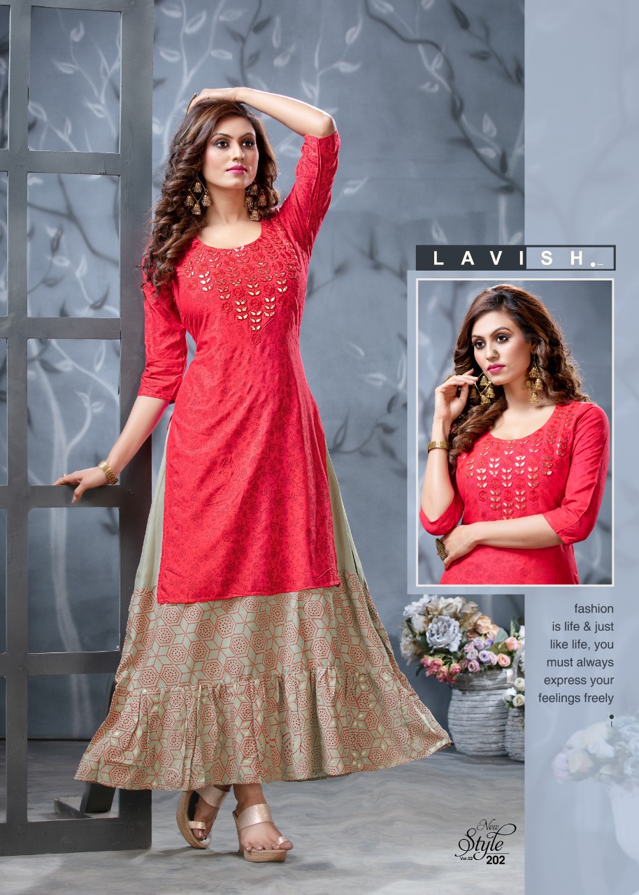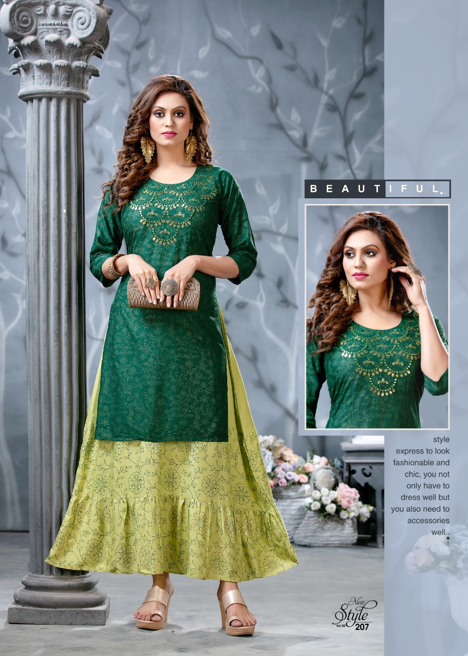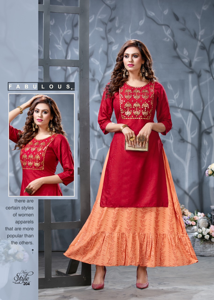 Ridhi Launch Style New Vol 2 Rayon Concept Kurti With Attached Skirt Pattern