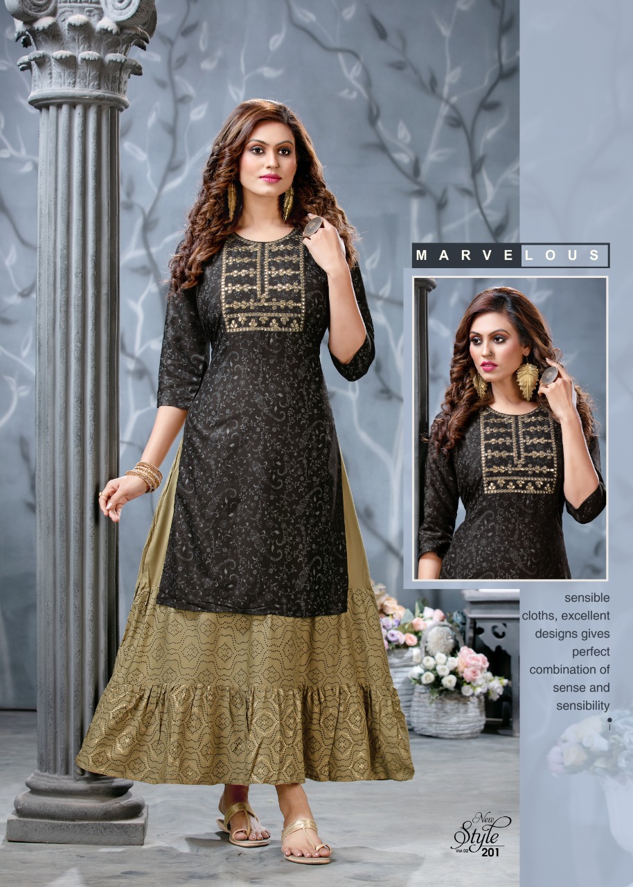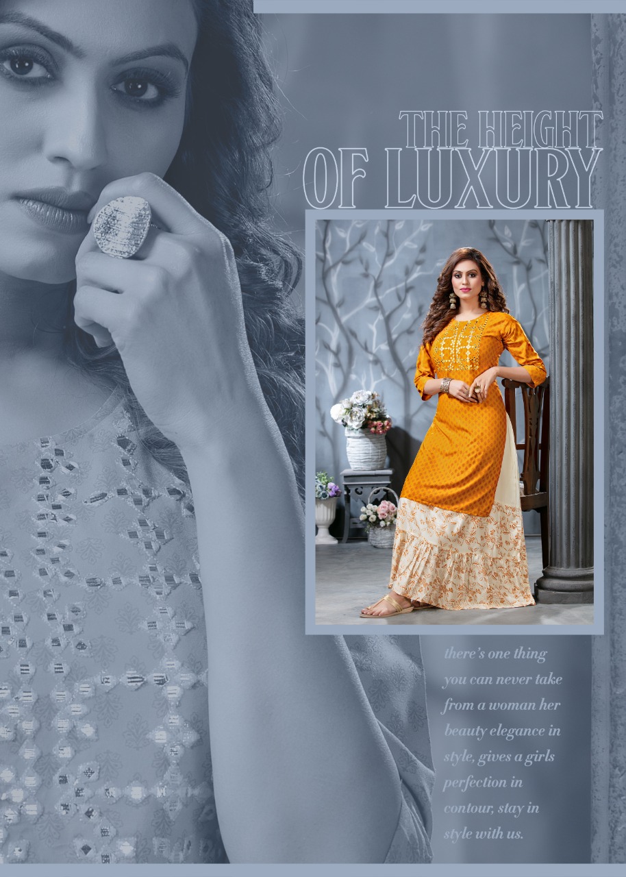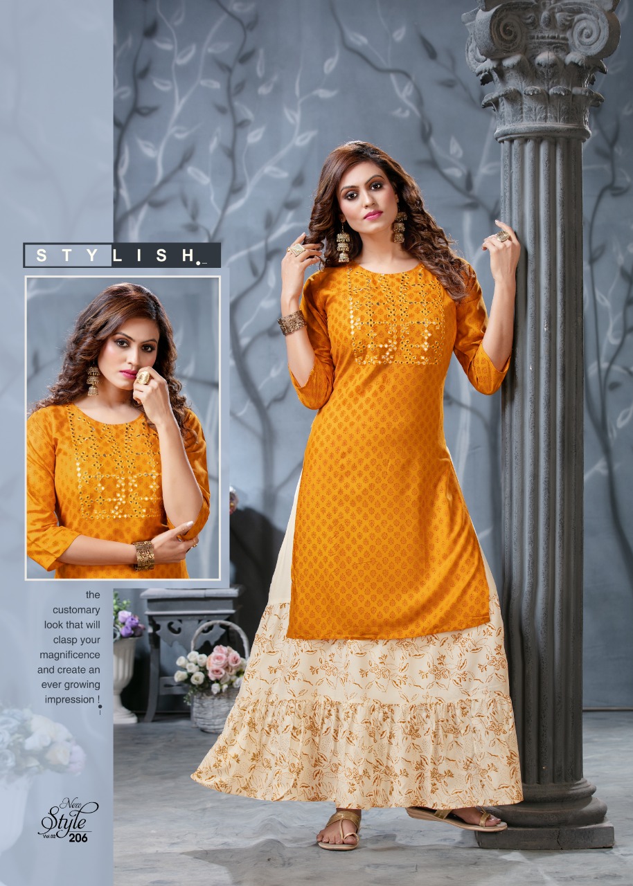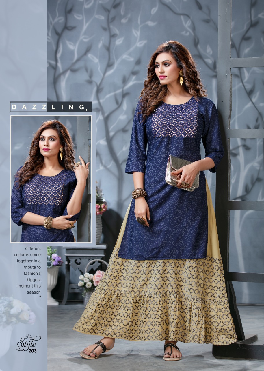 Ridhi Launch Style New Vol 2 Rayon Concept Kurti With Attached Skirt Pattern