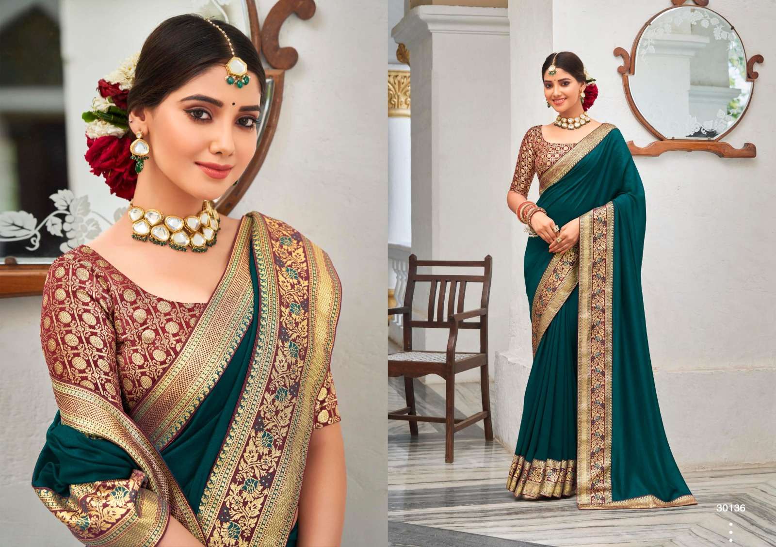 right women present kantara silk 30131-30138 series fancy jacqurad lace sarees with blouse peice