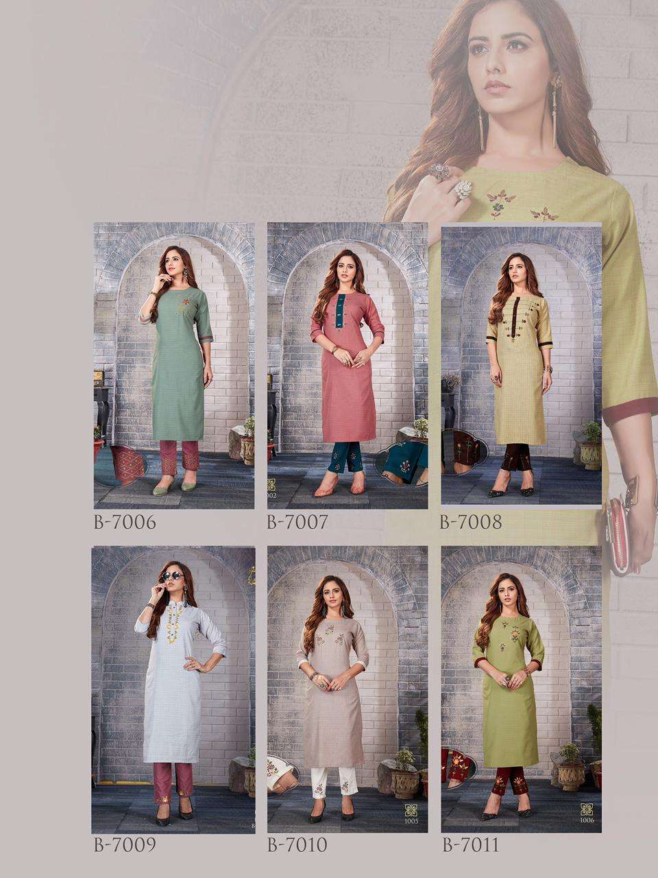 "PENTHOUSE Vol-02" Fabric : Fancy Cotton (Kurti) Pattern : Hand embroidery mirror Size : M(38), L(40), XL(42), Rate : ₹ 686/- + [5%] GST Book your order now... Note: Colours in real may slightly vary from as seen in photos. Dispatch: 15/02/2021 |