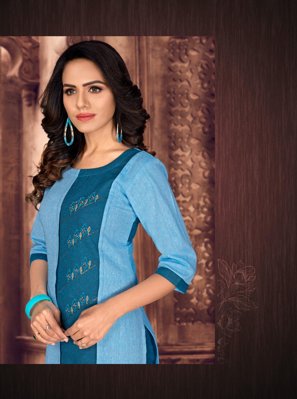 Catalogue Name: PINK CITY Designs : 5 pcs. Fabric : Cotton (Kurti and Pant) Pattern : Handwork Size : M(38), L(40), XL(42), XXL(44) Rate : ₹ 575/- + [5%] GST Book your order now... |