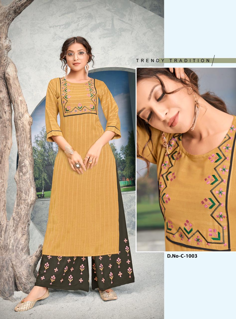 Rijiya Trends Presents Guzaarish Rayon Weaving Charming Look Kurti With Plazzo