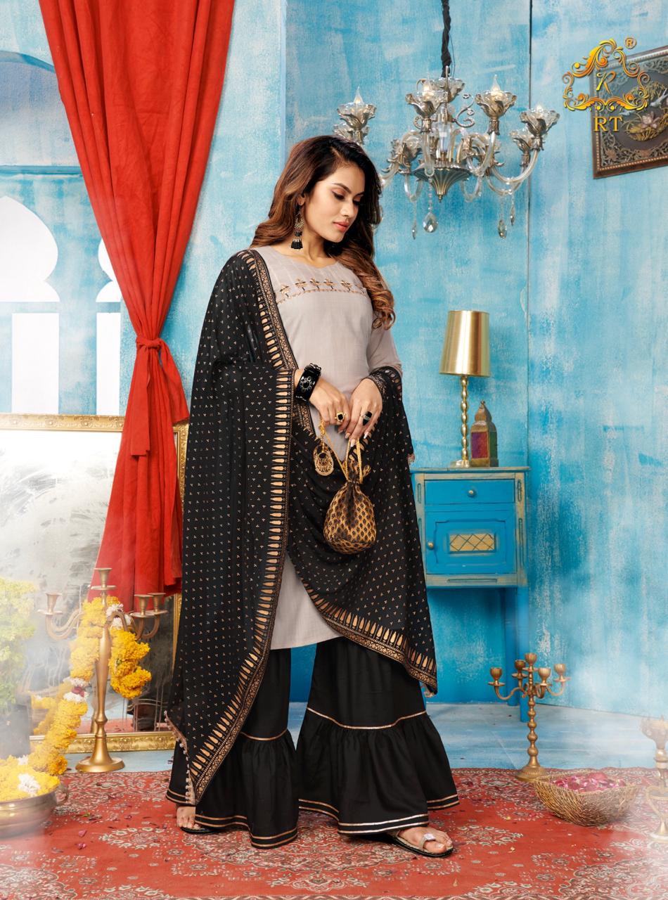 Rijiya Trendz Tjori Viscose Ready Made Sharara Style Salwar Suit With Purse Concept