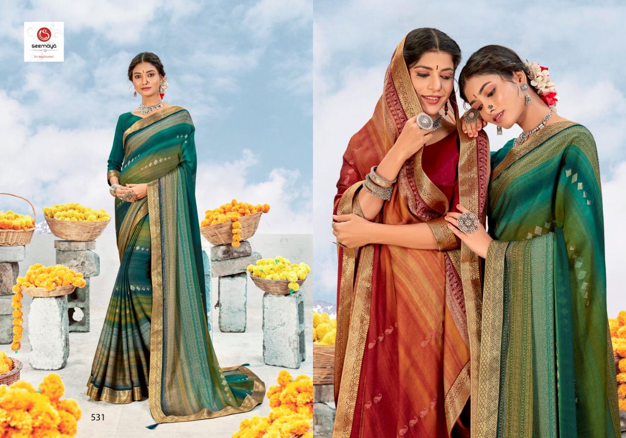 Rim Jhim By Seemaya Fancy Chiffon With Banarasi Border Saree At Wholesale Rate