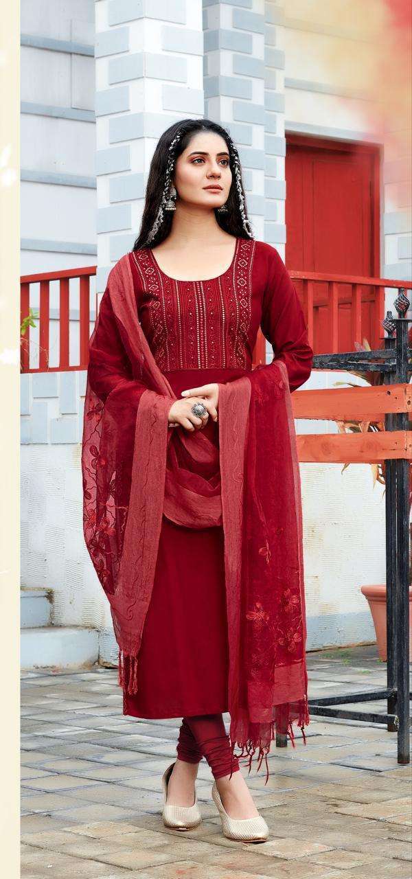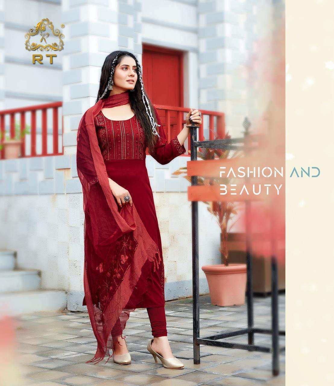 Rim-jhim Latest Fancy Rayon Embroidered Kurti With Dupatta Set By Rijiya Trends