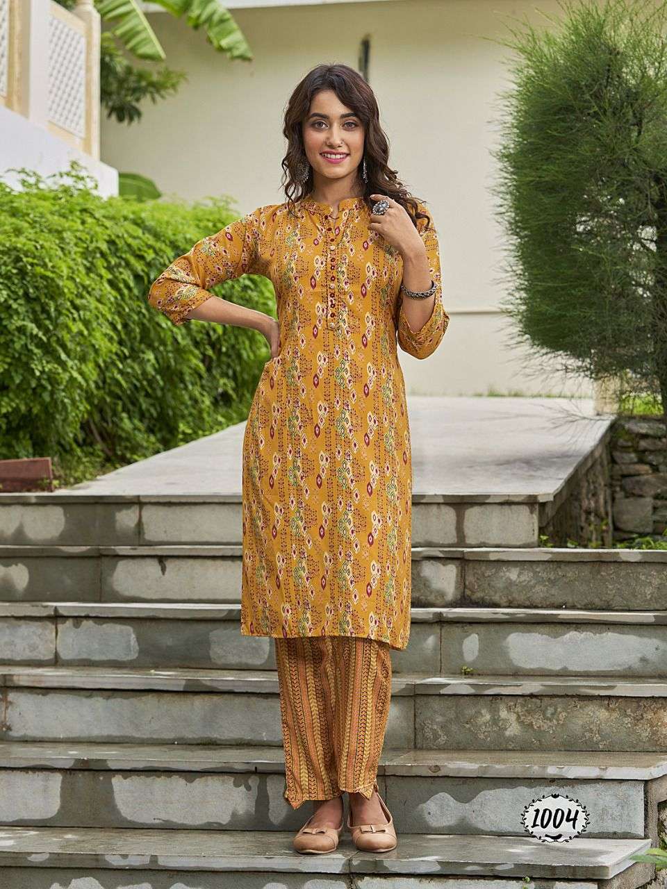 RIMZIM_V.1 Finest Quality of Pure 14 Kg MUSLIN GOLD PRINT KURTI PANT SET CATALOG WHOLESALER BEST RATE