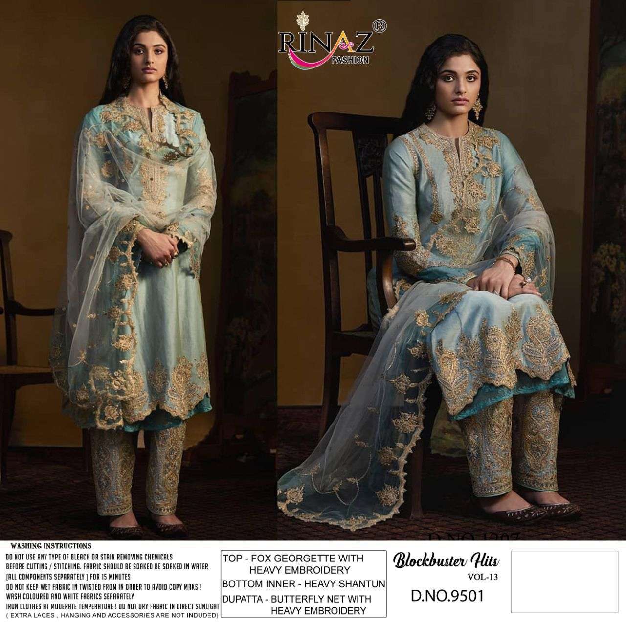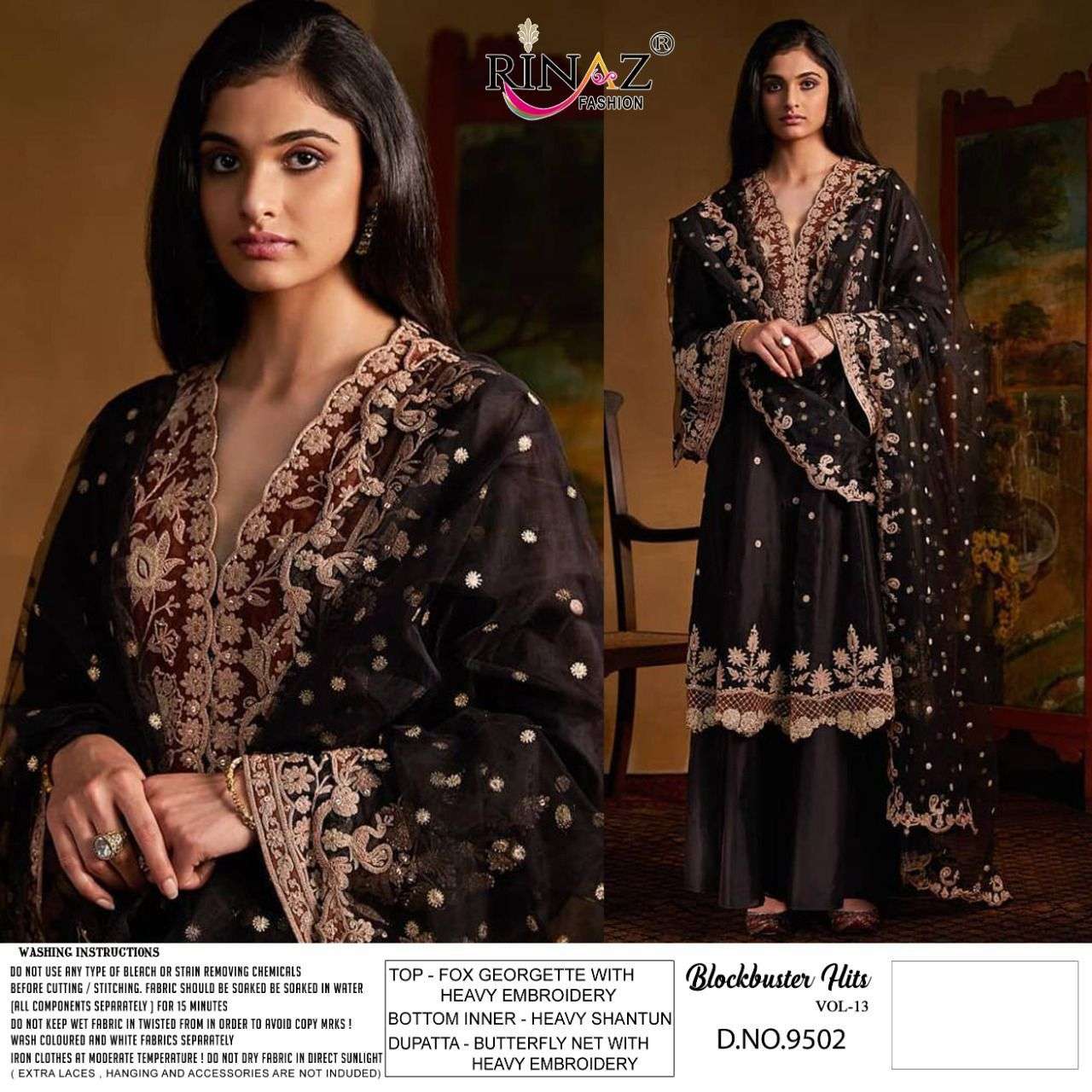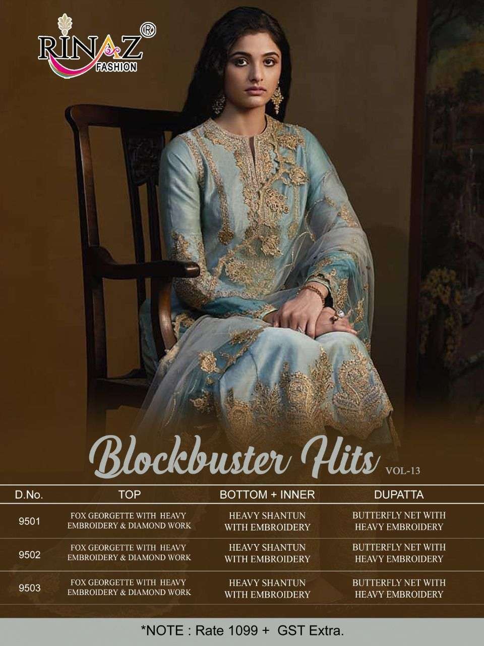 Today RINAZ-FASHION ®️*hitting market again with exclusively trending series of pakistani *concepts 💕 BLOCK-BUSTER VOL.-13💕 👇🏻Fabric details 👇🏻 👗 Top : Fox Jorjet with Heavy Embroidery&Diamond Work 👖Bottom inner- Heavy Dul Shantun 🔺Dupatta :Net With Heavy embroidery 🔻Price : 💸 1099/+ GST |