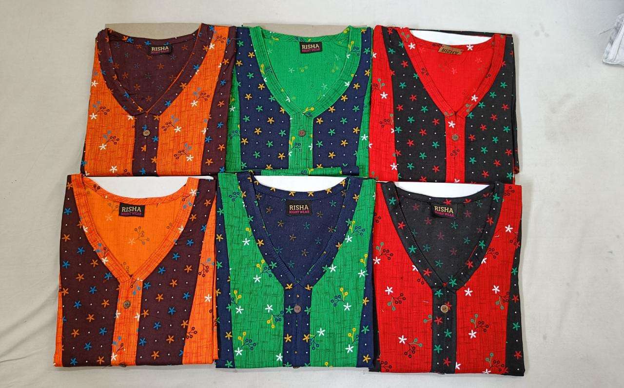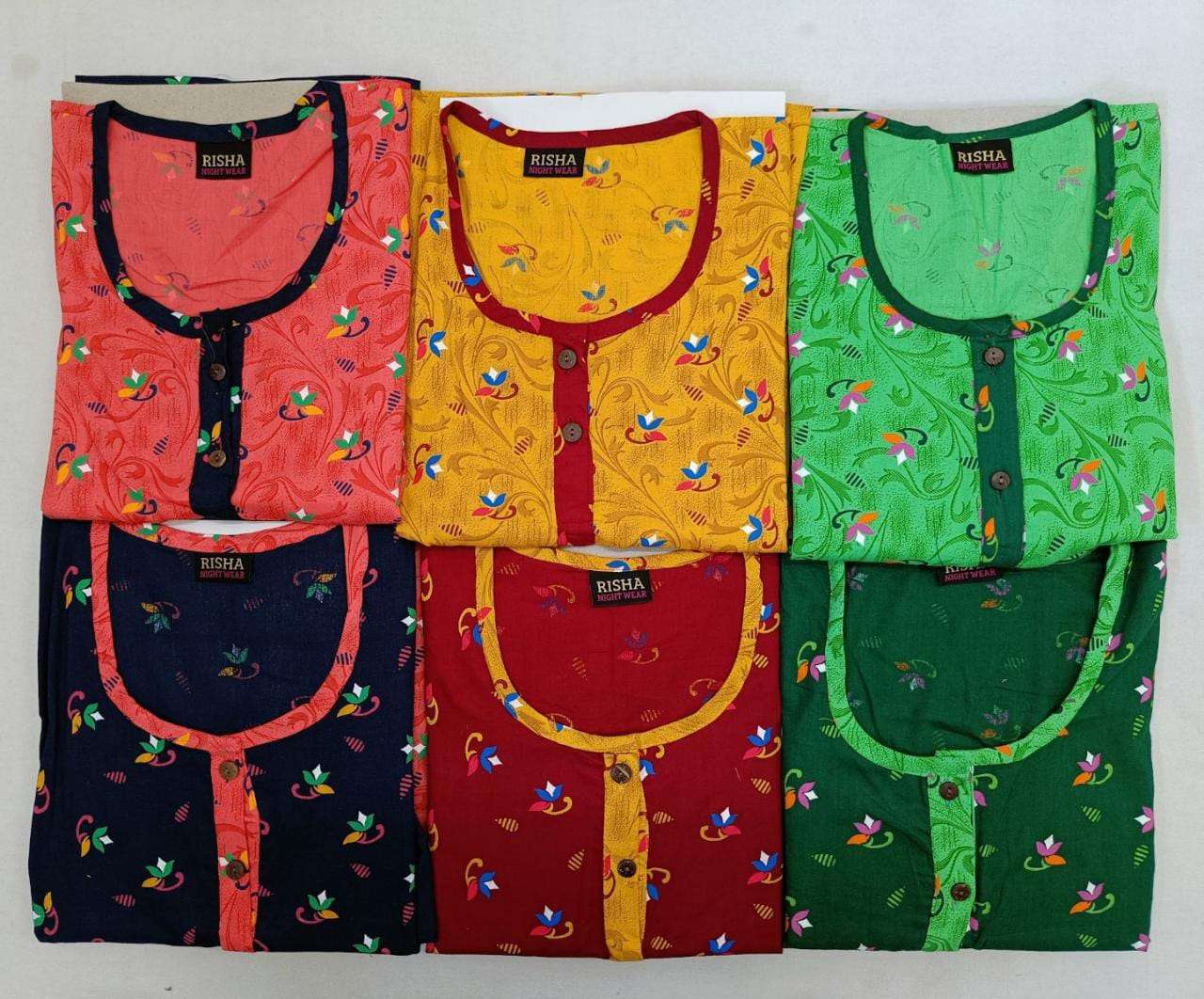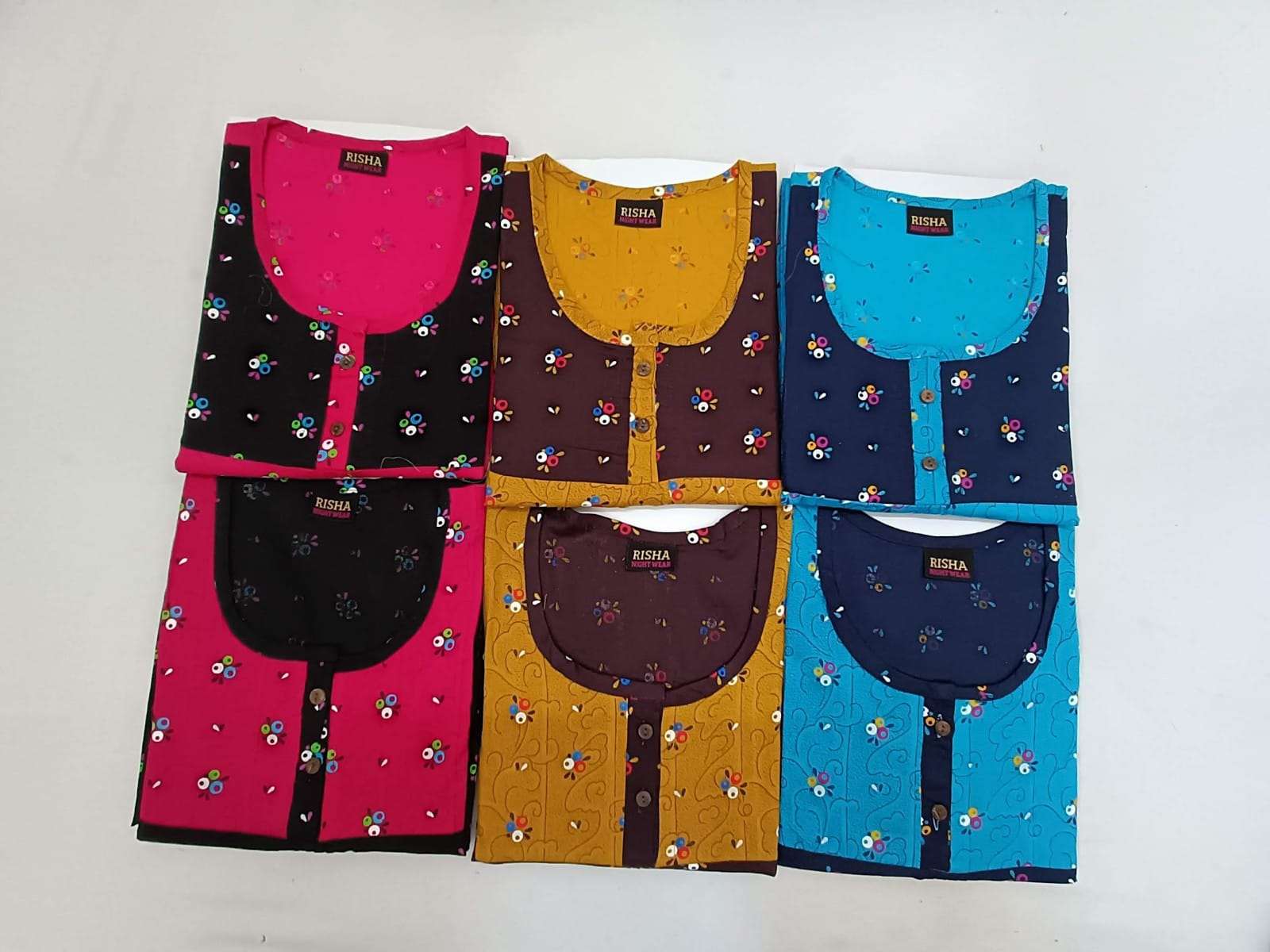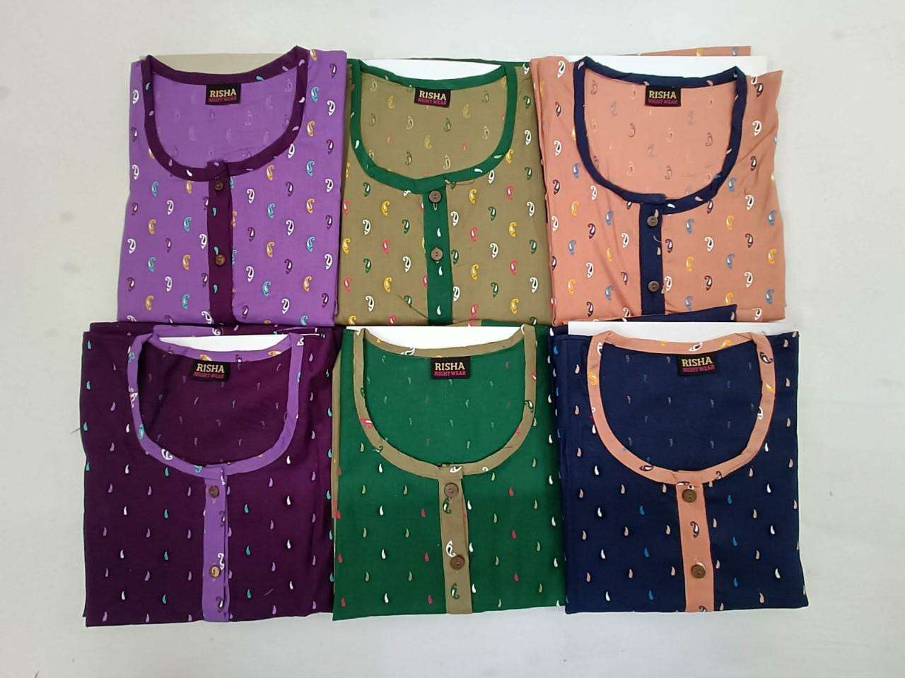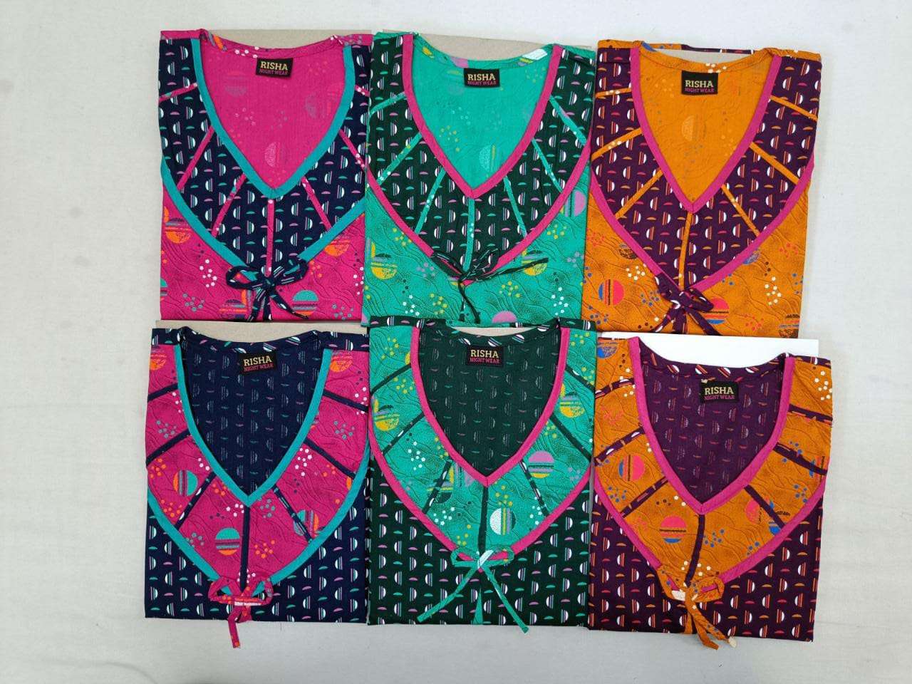 RISHA NIGHT WEAR CATALOG NAME: SITARA 6 NEW DESIGNS CURRENTLY AVAILABLE FREE SIZE RATE IS 275 plus gst |