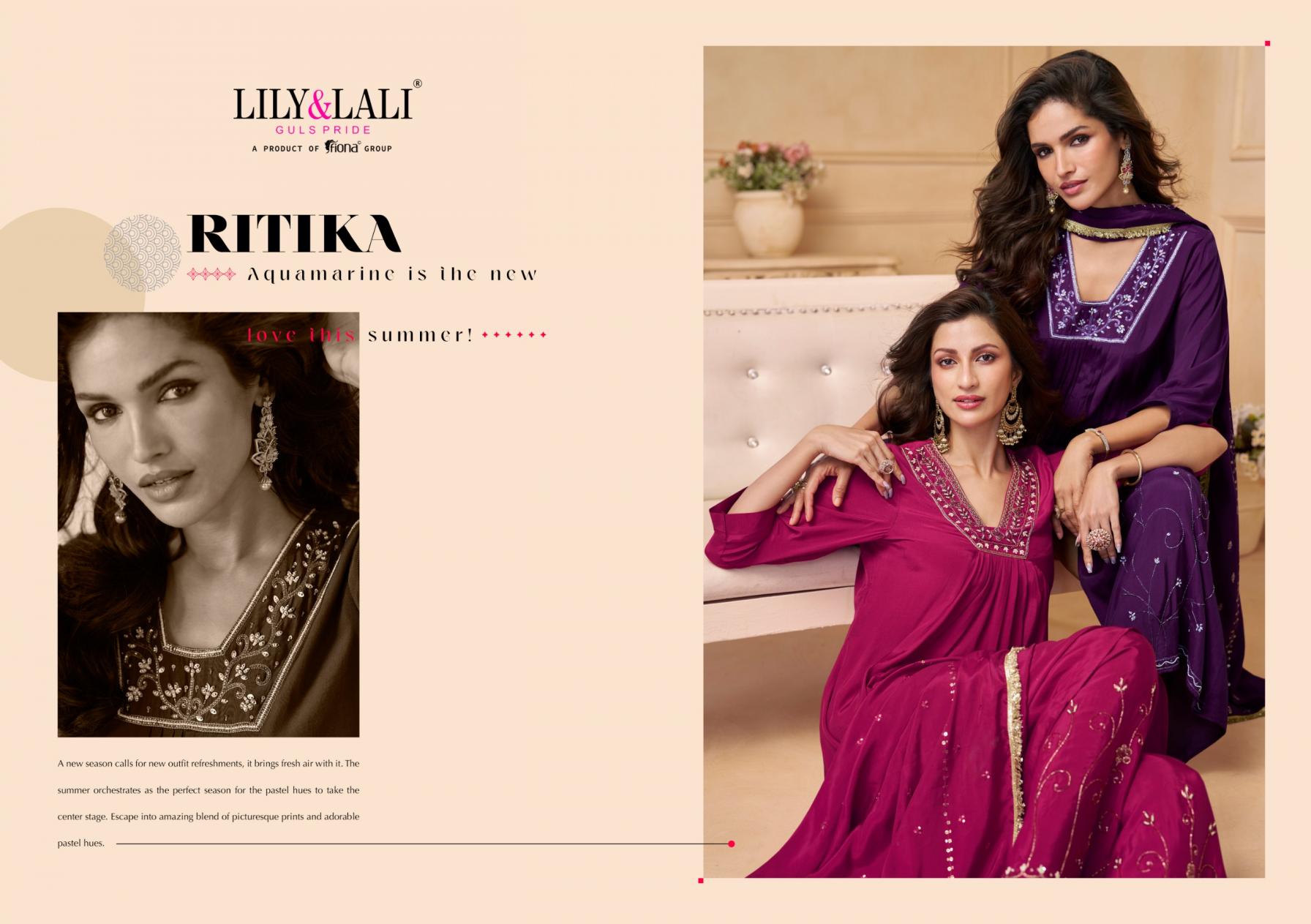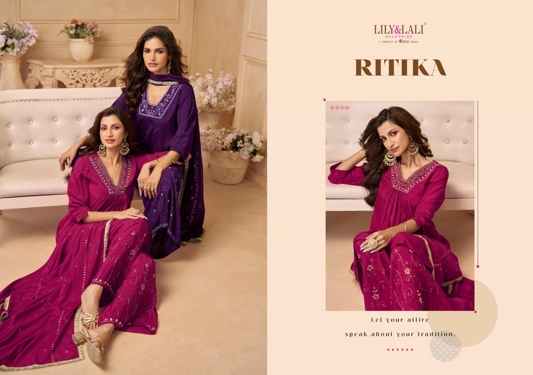ritika by lily & lali natural crepe fully stitch party wear ladies suits