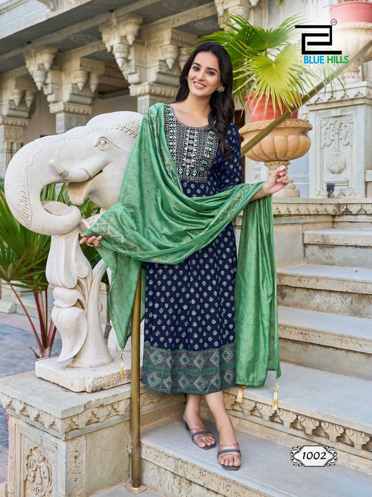 ritu special vol 1 by blue hills rayon anarkali readymade gown with dupatta