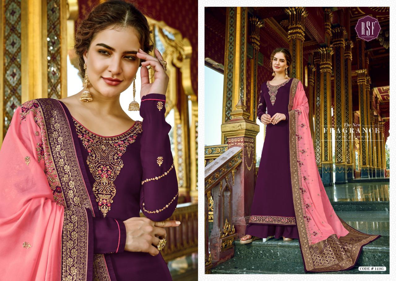 RIVAA SAHIRA Jam satin printed top with jam satin dyed bottom and pure chiffon printed dupatta wholesale rate-905/- (Ratelist attached) 5% GST applicable Set to set only Delivery tomorow |