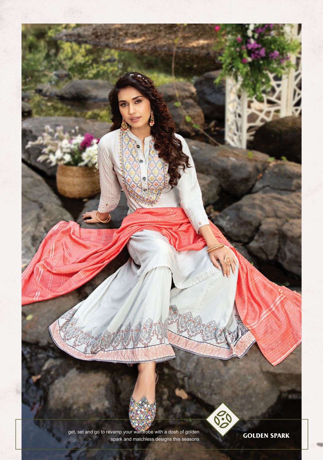 👗Catalogue Name- 👗 TOP :- Viscos Lurex with embroidery Work, Gota patti work, Hand work Touchup, lesspatti work Bottom :- Muslin Silk with print and less work Sharara, Garara or skirt, Plazzo 🎗Size :- M(19) L(20) XL(21) XXL(22), 3xl(23) 🎗️ Desgin :- 8 pcs |
