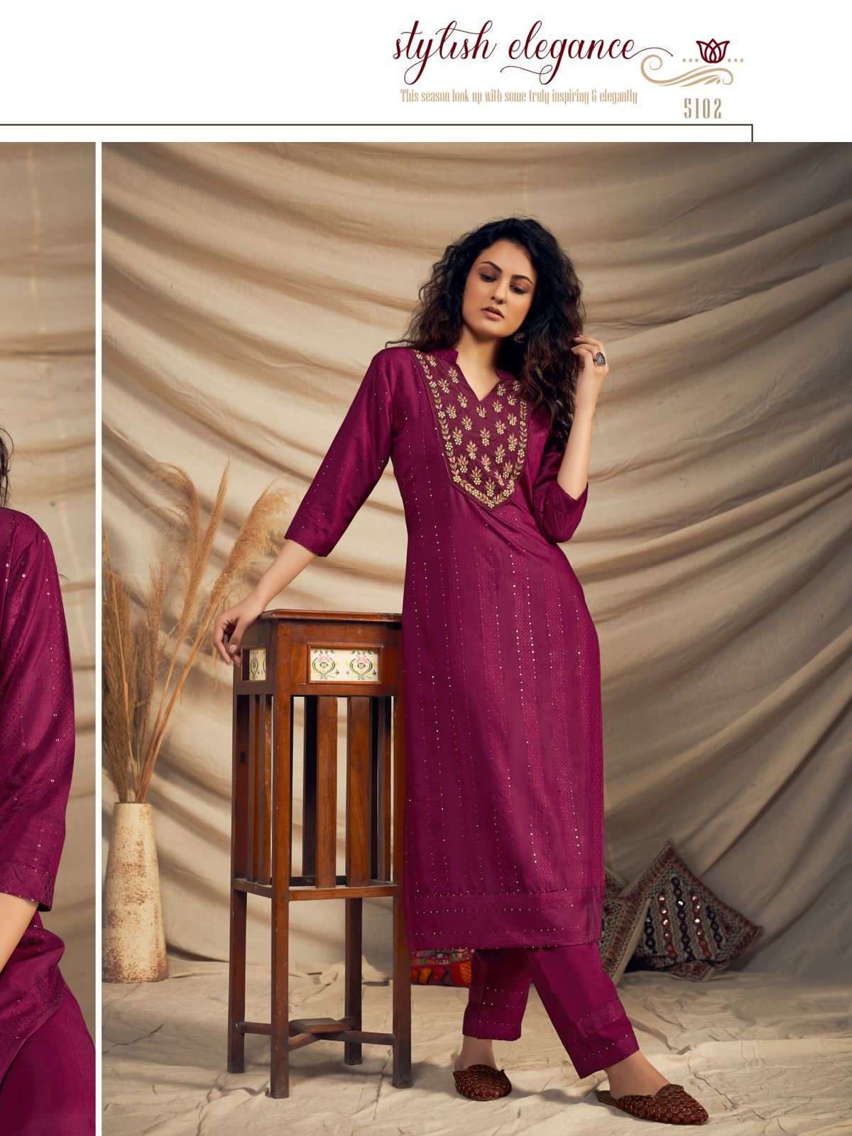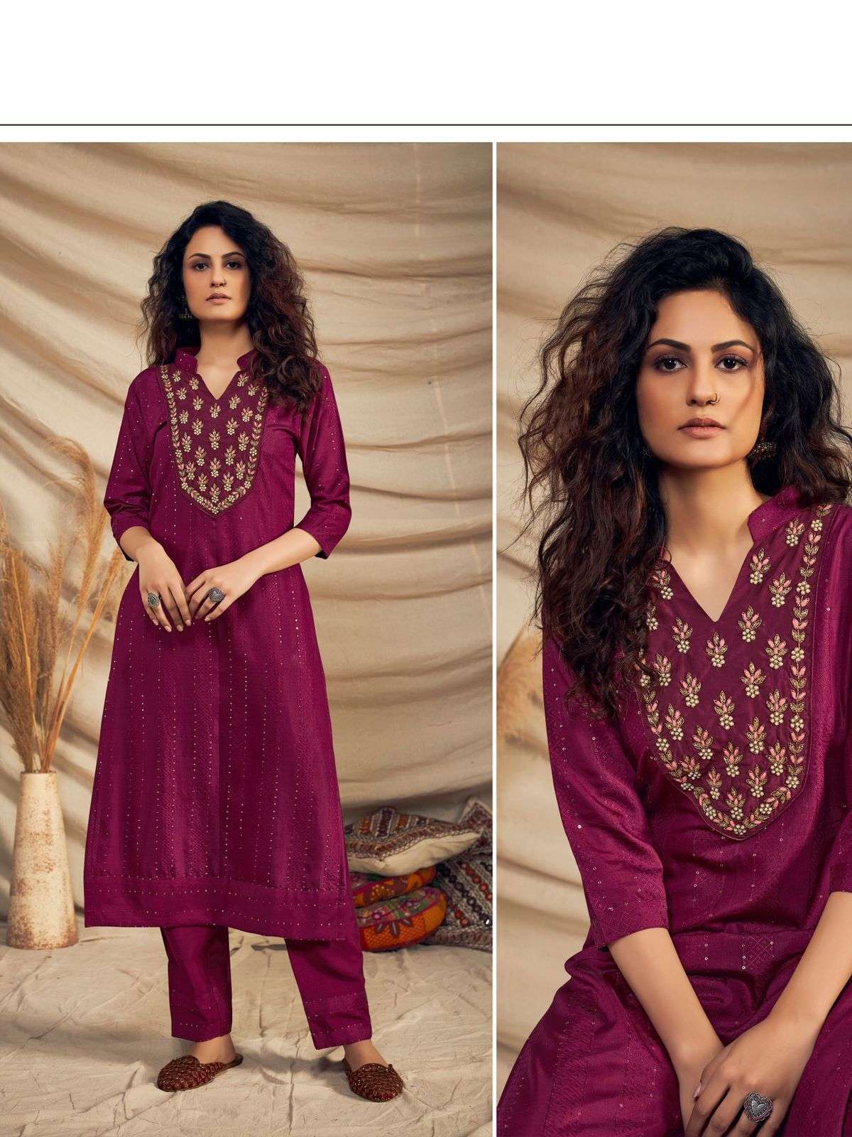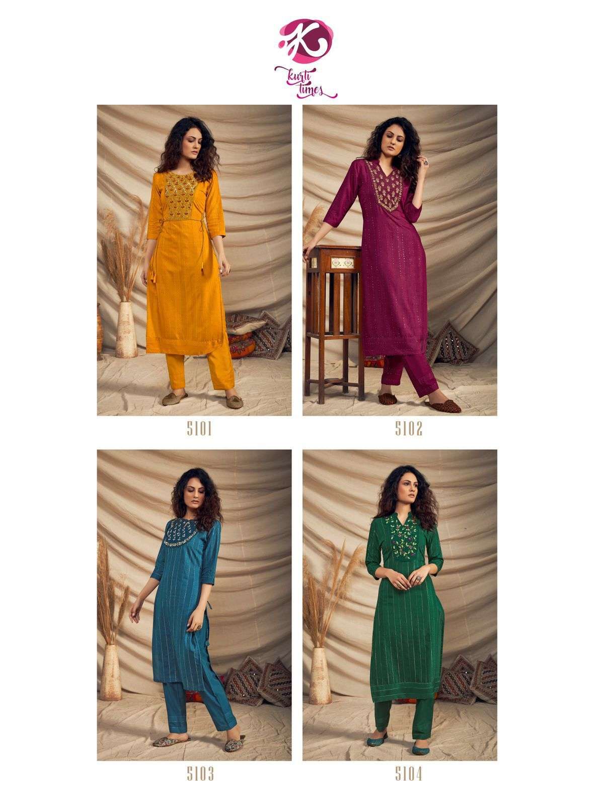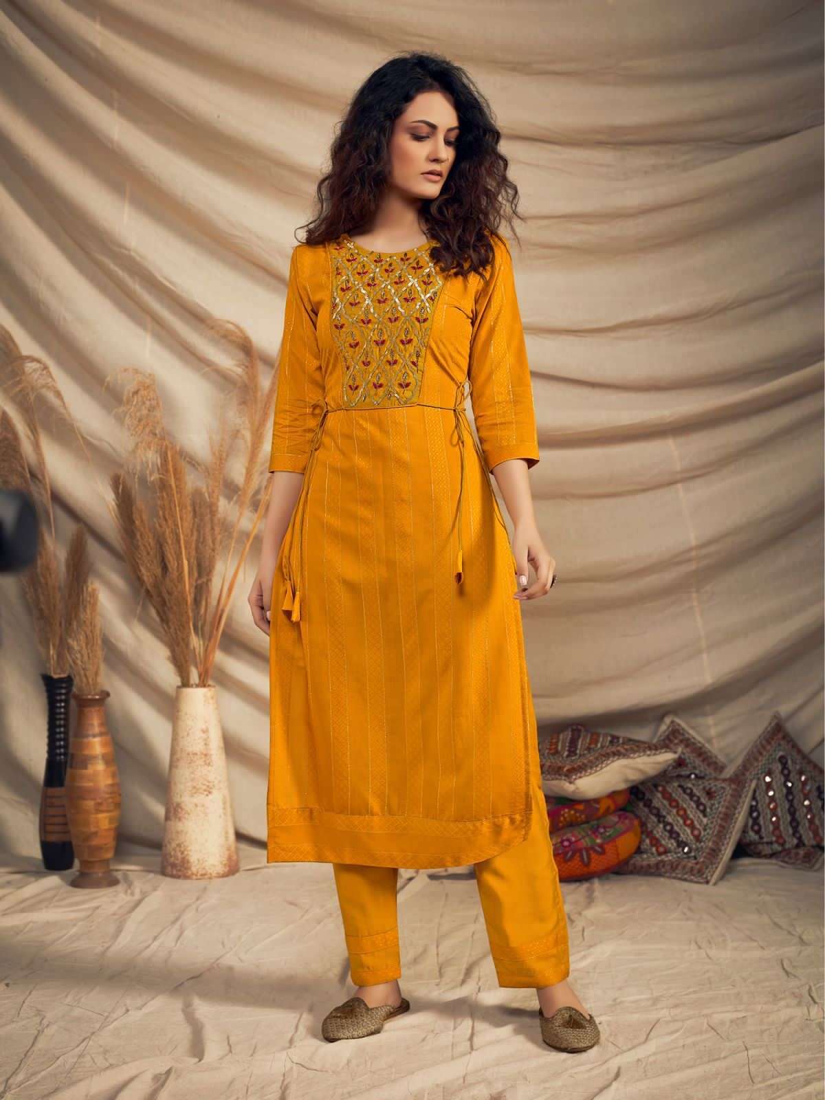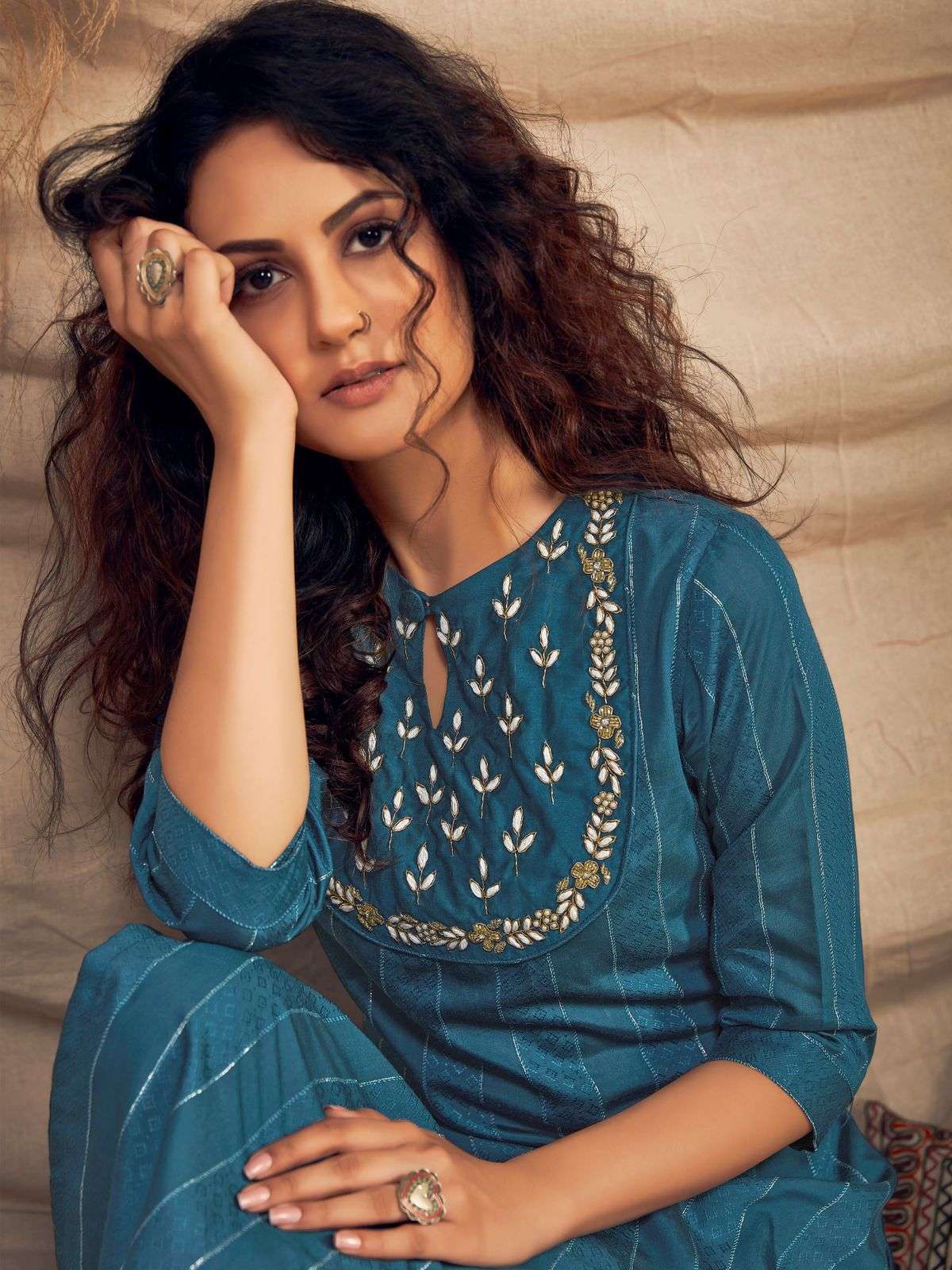 Kurti Times     Presents Catalogue name-      RIWAZ *Fabric :- Viscose Work :- Handwork..!!! 4pcs catalogue Size-   M, L, XL,2Xl , Colours - 4 Length- Top-46â         Bottom-39â  Rate :-  895/- + 5% Gst will be added on Bill Amt. Set to set Dispatch with 4-5 days |