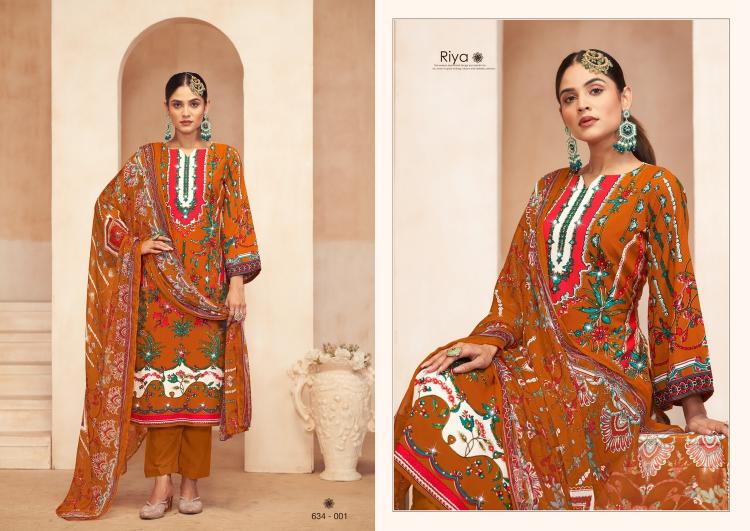 presents "RIYA" 🔺Dupatta: 100% Pure Nazneen Chiffon (2.30 mtrs apx) 🔺Bottom: 100% Pure Viscose Rayon 🔺Pcs: 6 pc 🔺 Rate: 875/- |