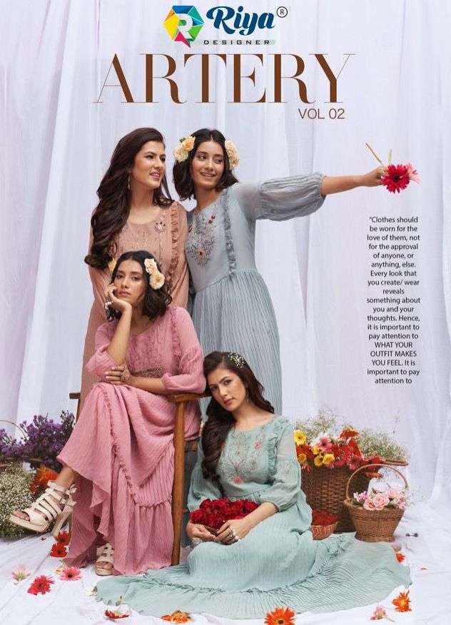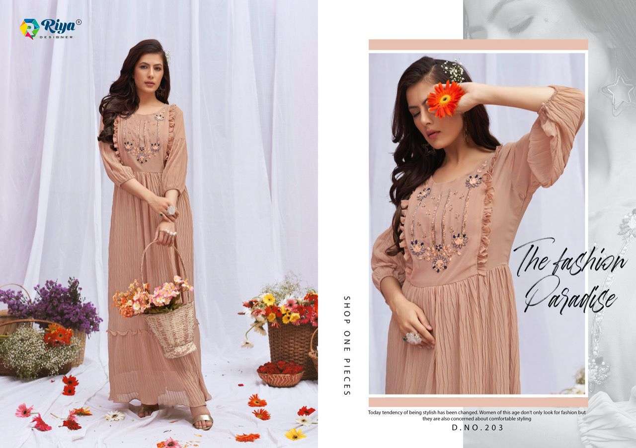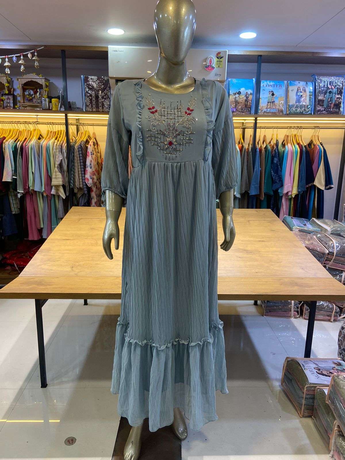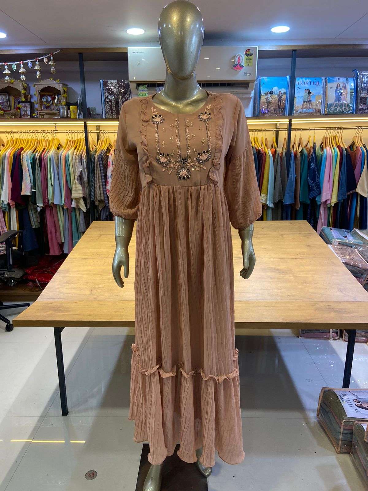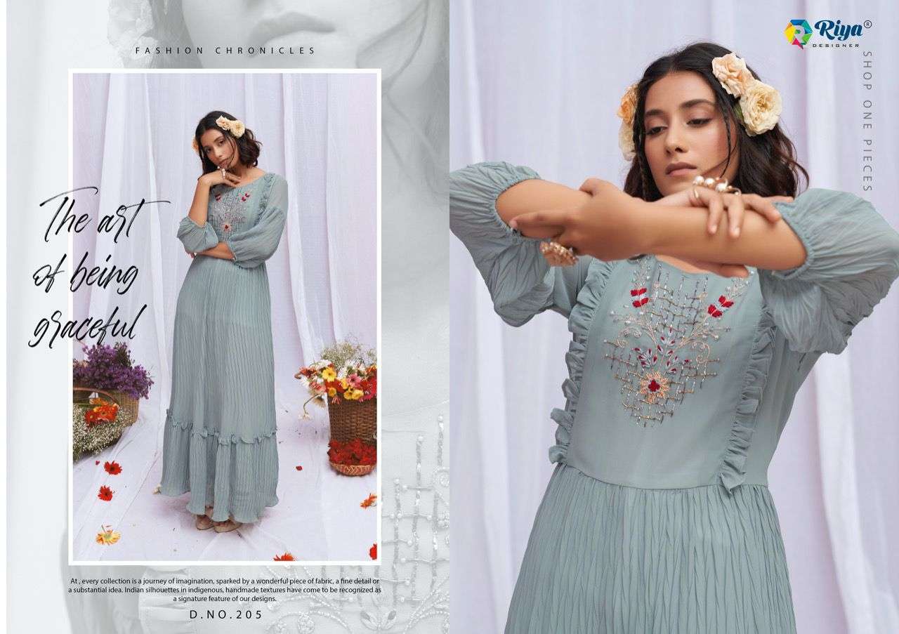 riya designer artrey vol 2 viscose georgette long gown kurti crushing pattern