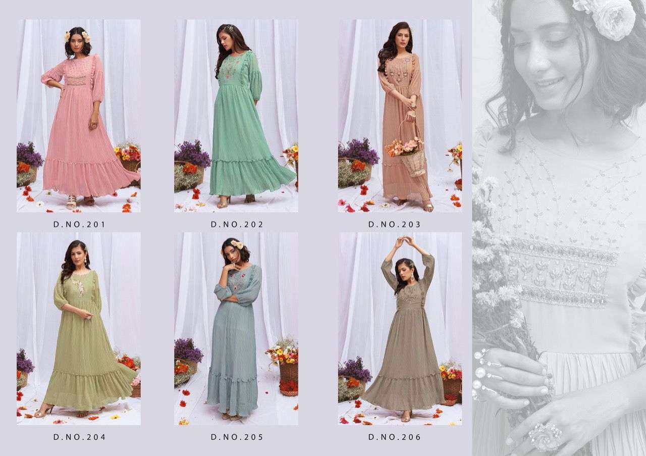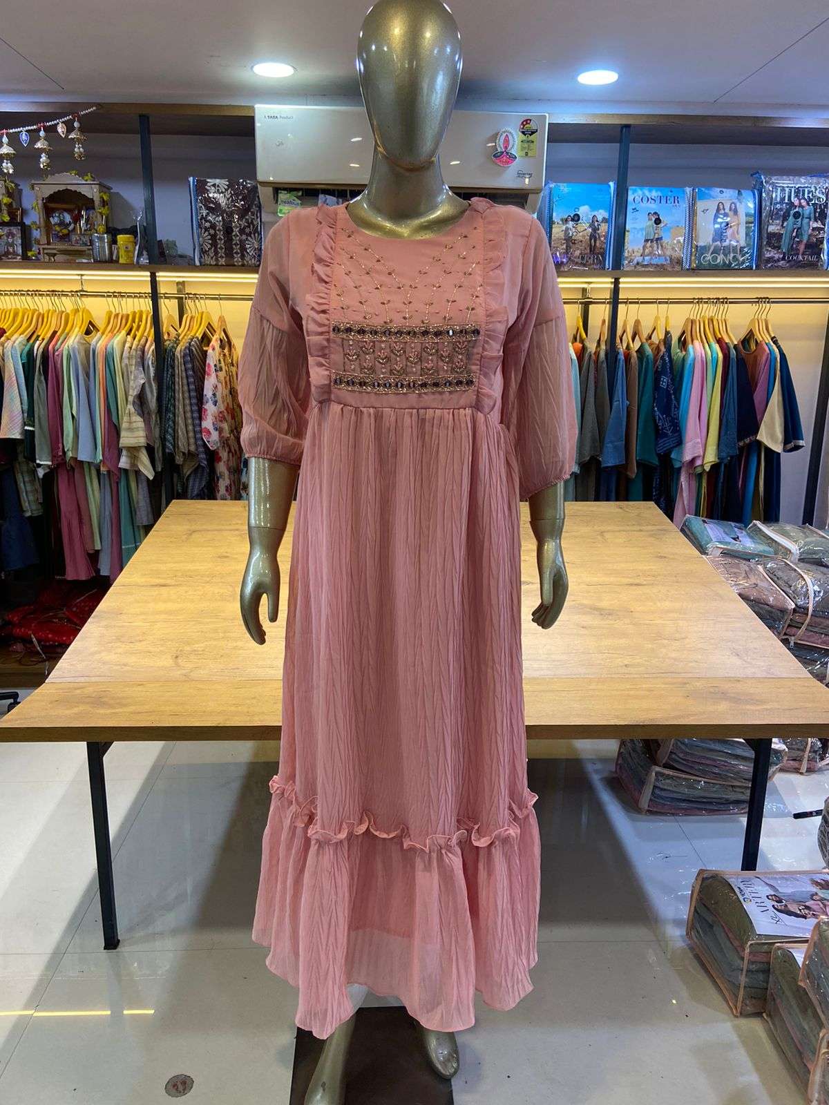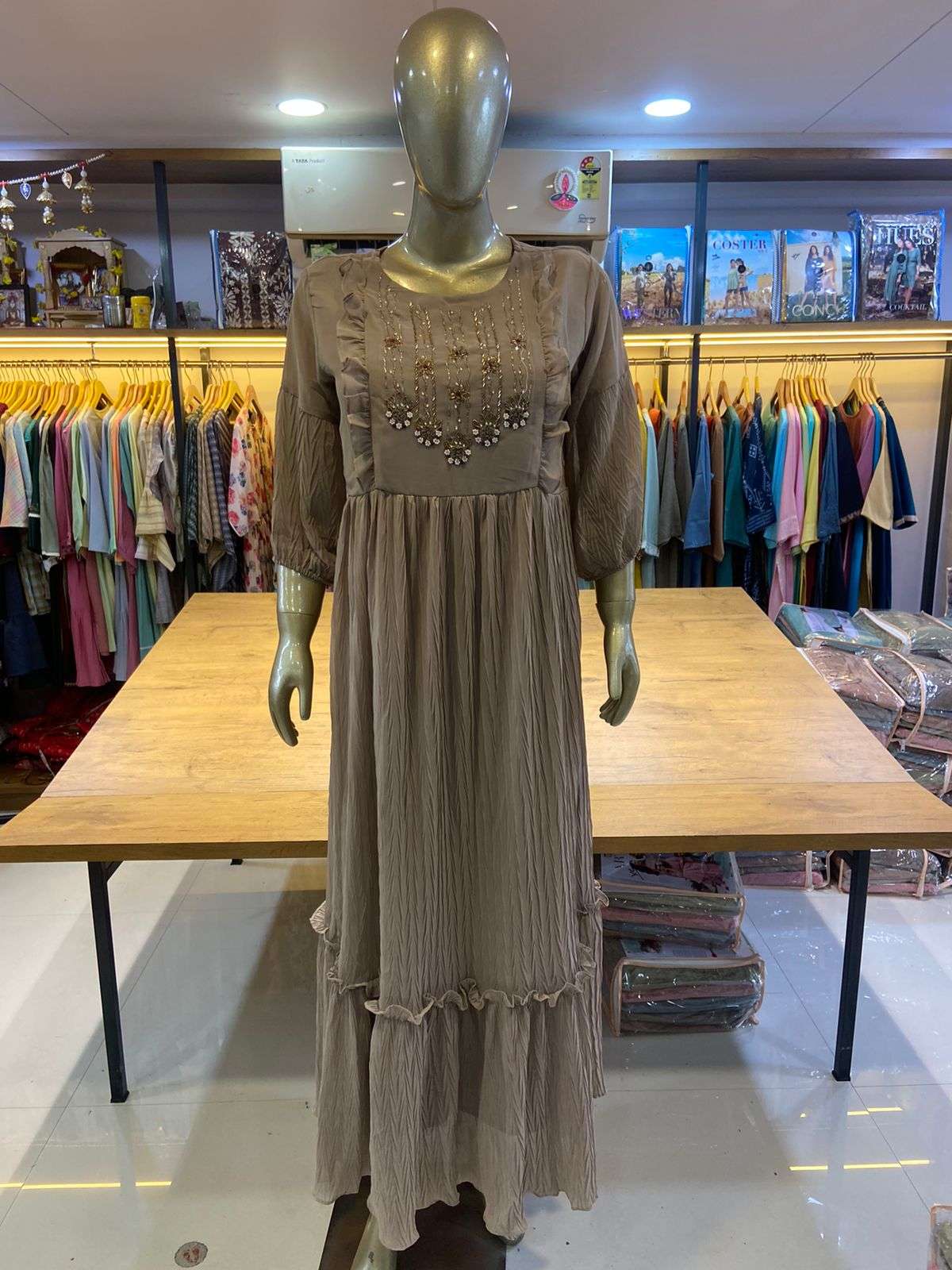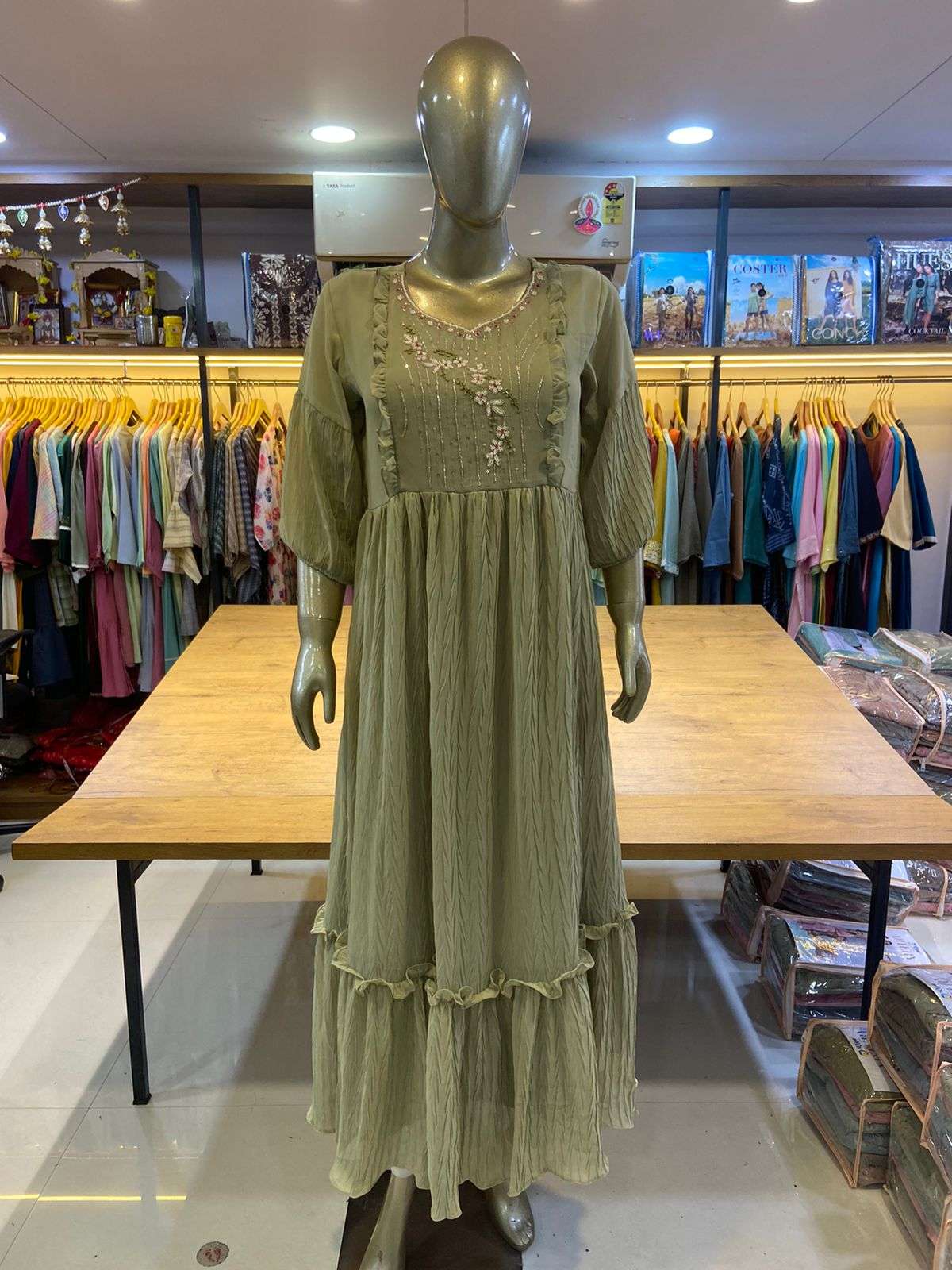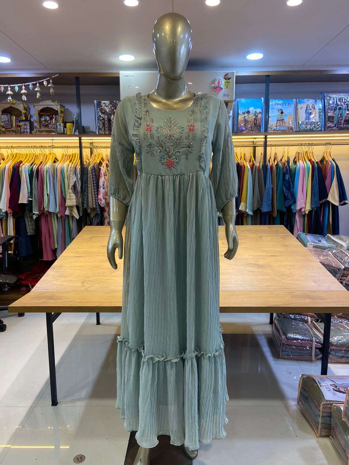 riya designer artrey vol 2 viscose georgette long gown kurti crushing pattern