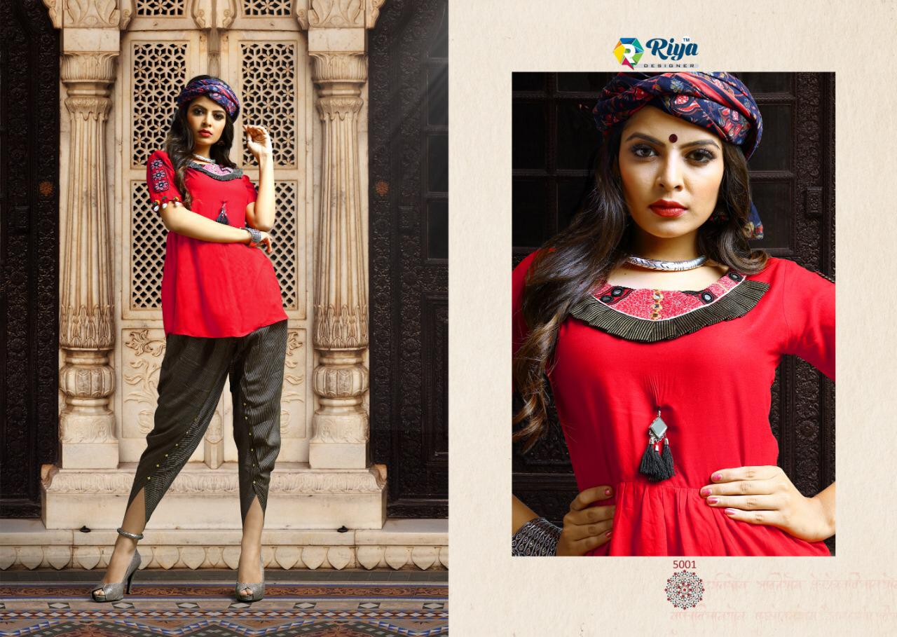 DHOLIDA* Riya Design™ brings you KEDIA COLLECTION The most awaited tribal collection we bring you the traditional art of Gujarat with ancient folk and contemporary motifs transformed in our selfmade silhouettes -✨KEDIA AND LEHNGA WITH DUPTTA AND RAYON GLOZE PANTS✨ This navratri lets rock n rolls with a stream Of Colour and gujarati folks. Fabric and Description 5 colorful heavily embroidered kedias and embroidered Lehnga With Duppta And pants in pure Reyon Gloze Fabric The sound of KODIs is going to mesmorize you The hand made Assosrices Sizes L-"40"chest and pants accordingly xl-"42"chest and pants accordingly XXL -"44"chest and pants accordingly price 999+5% Bookings open for set to set (5 pcs in bag) dispatch from 9th september bookings on for sets Limited Stock |