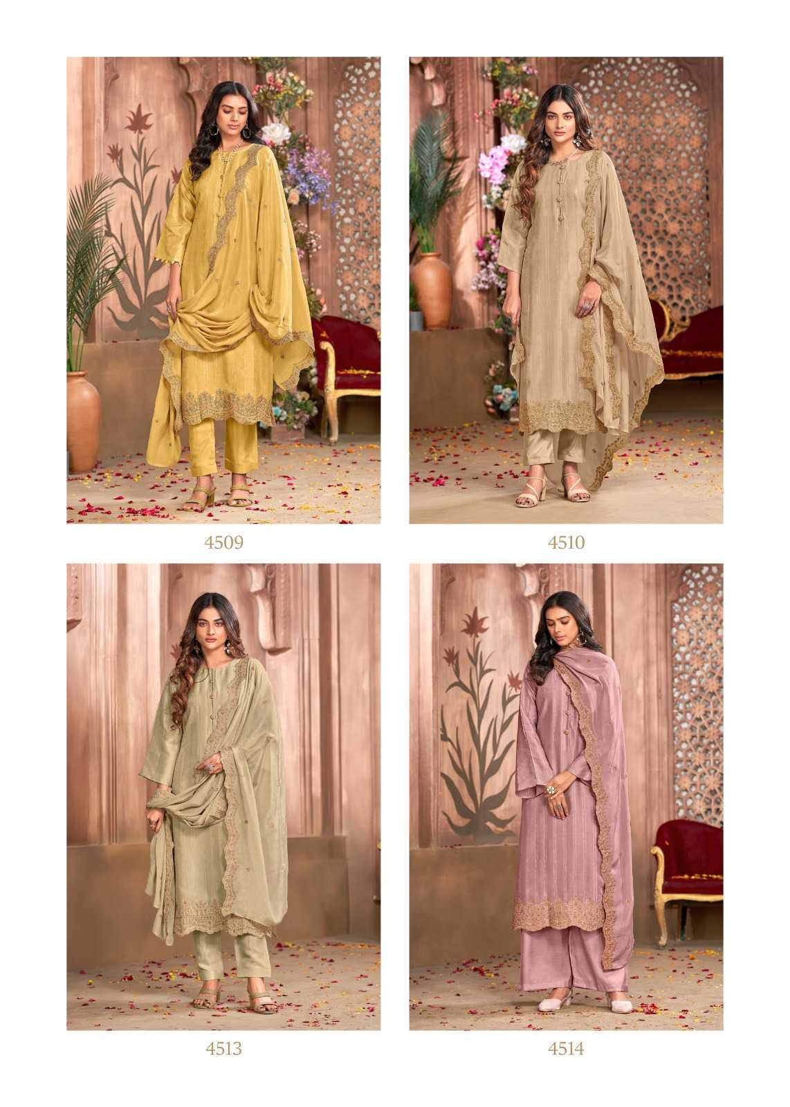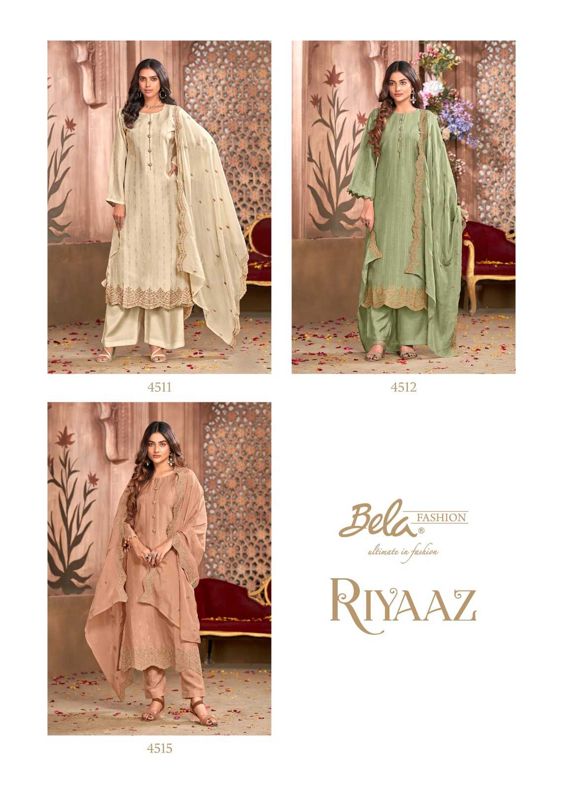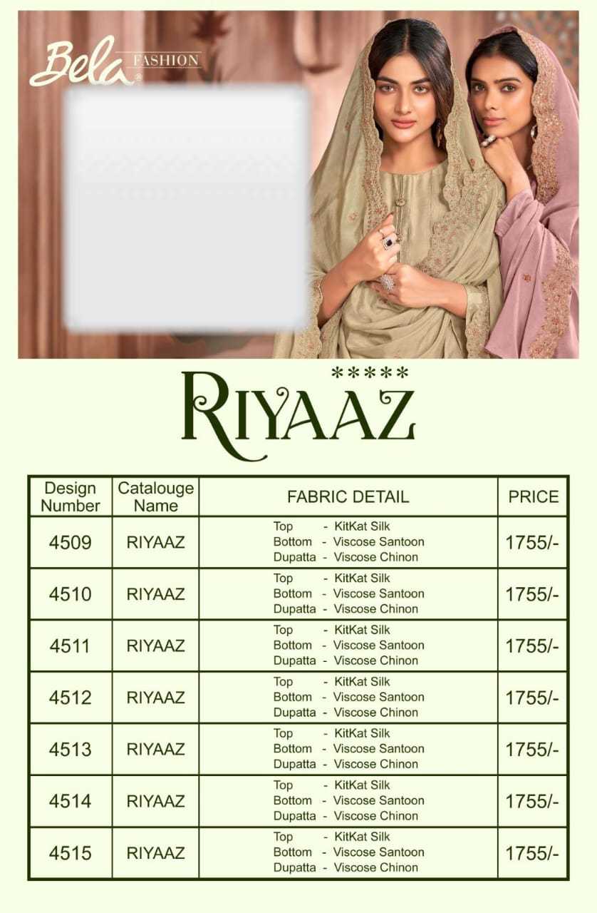 Bela Riyaaz 4509 To 4515 Fabrics & price list attached GST EXTRA Set to set |