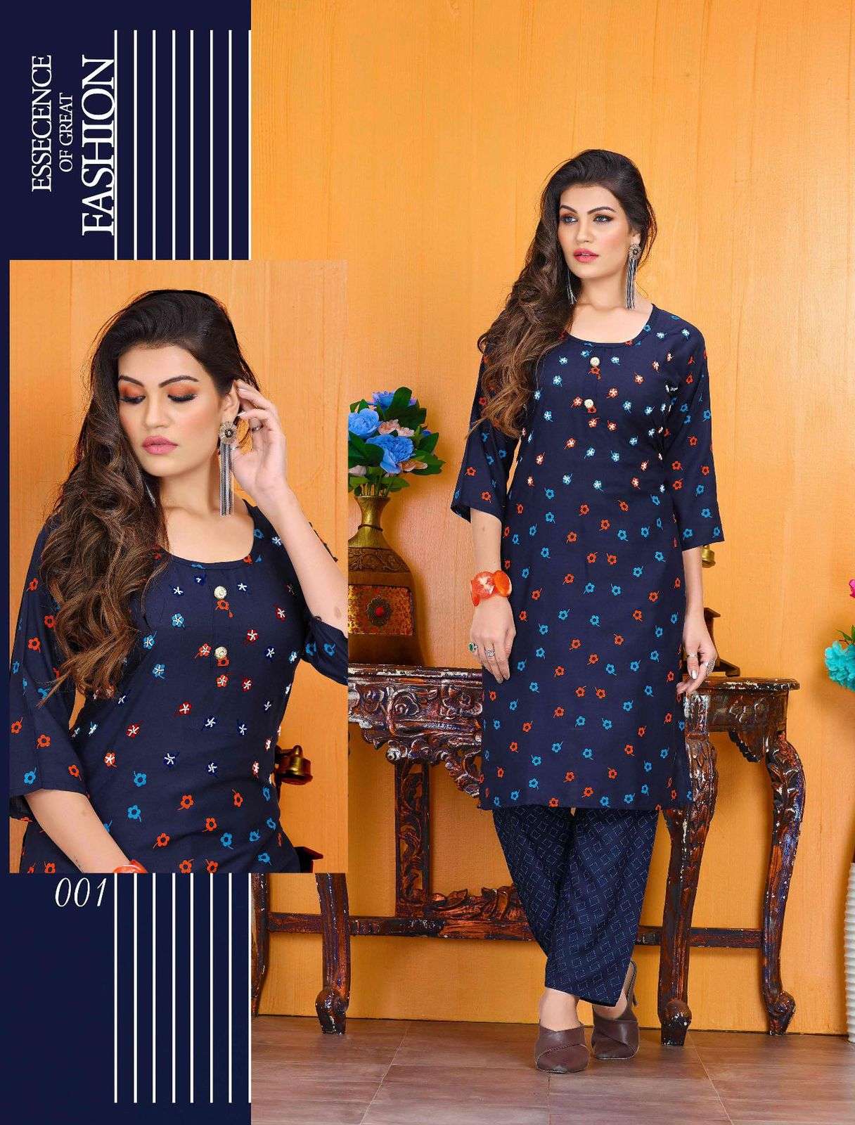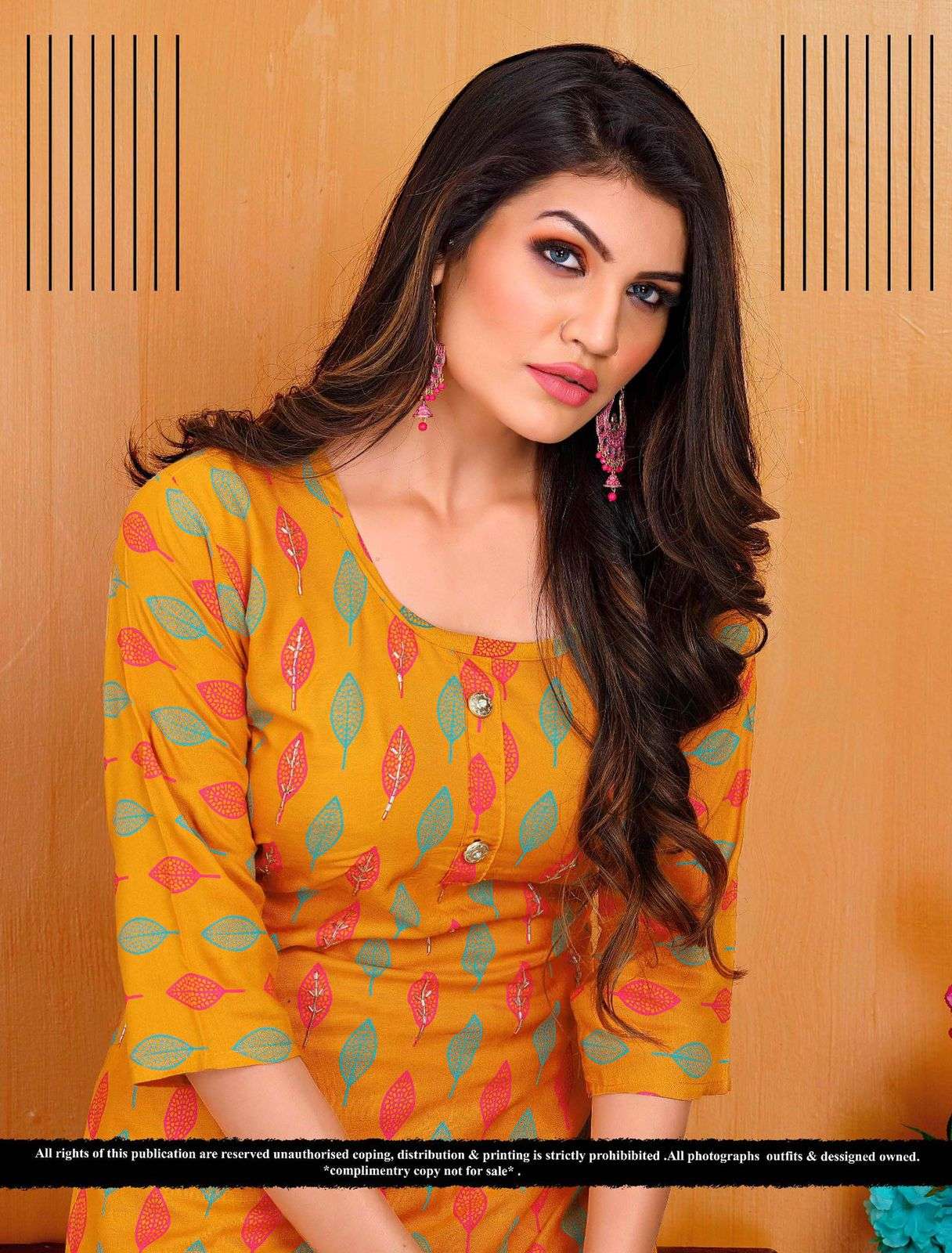 RIYYA YASTI HEAVY RAYON SCREEN PRINT WORK WITH DESIGNER KURTI PANT SET CATALOG WHOLESALER BEST RATE