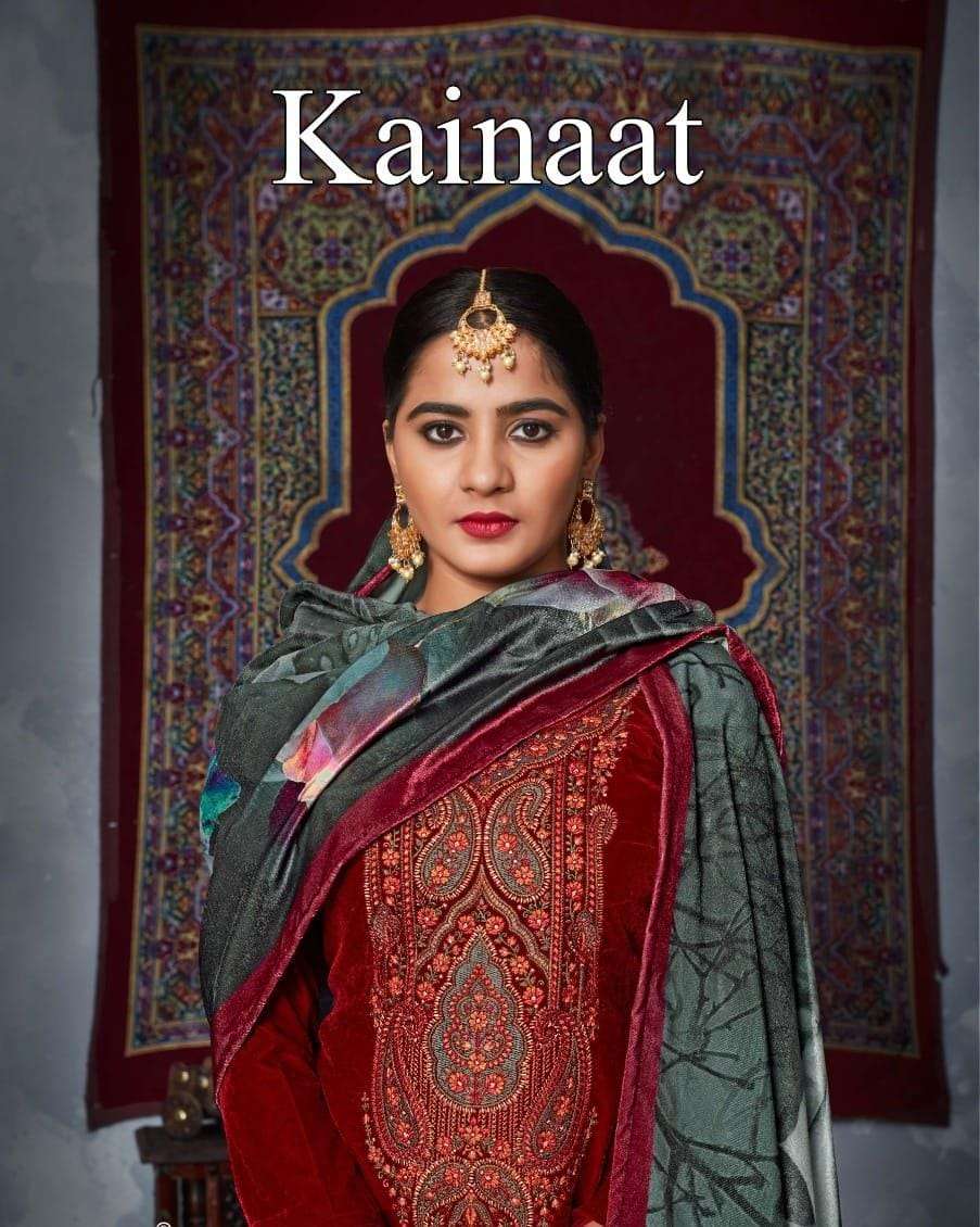 - RK GOLD ✨Presents new and exclusive designer winter collection range KAINAAT Fabric details: 👖 Bottom: Pure Pashmina dyed ; Cut: 3.00 mts Dupatta: Pure VELVET 9000 digital printed dupatta; Cut: 2.25 mts 🔸Pcs : 6️⃣ 🔸Rate:1️⃣1️⃣4️⃣5️⃣/- per pcs |