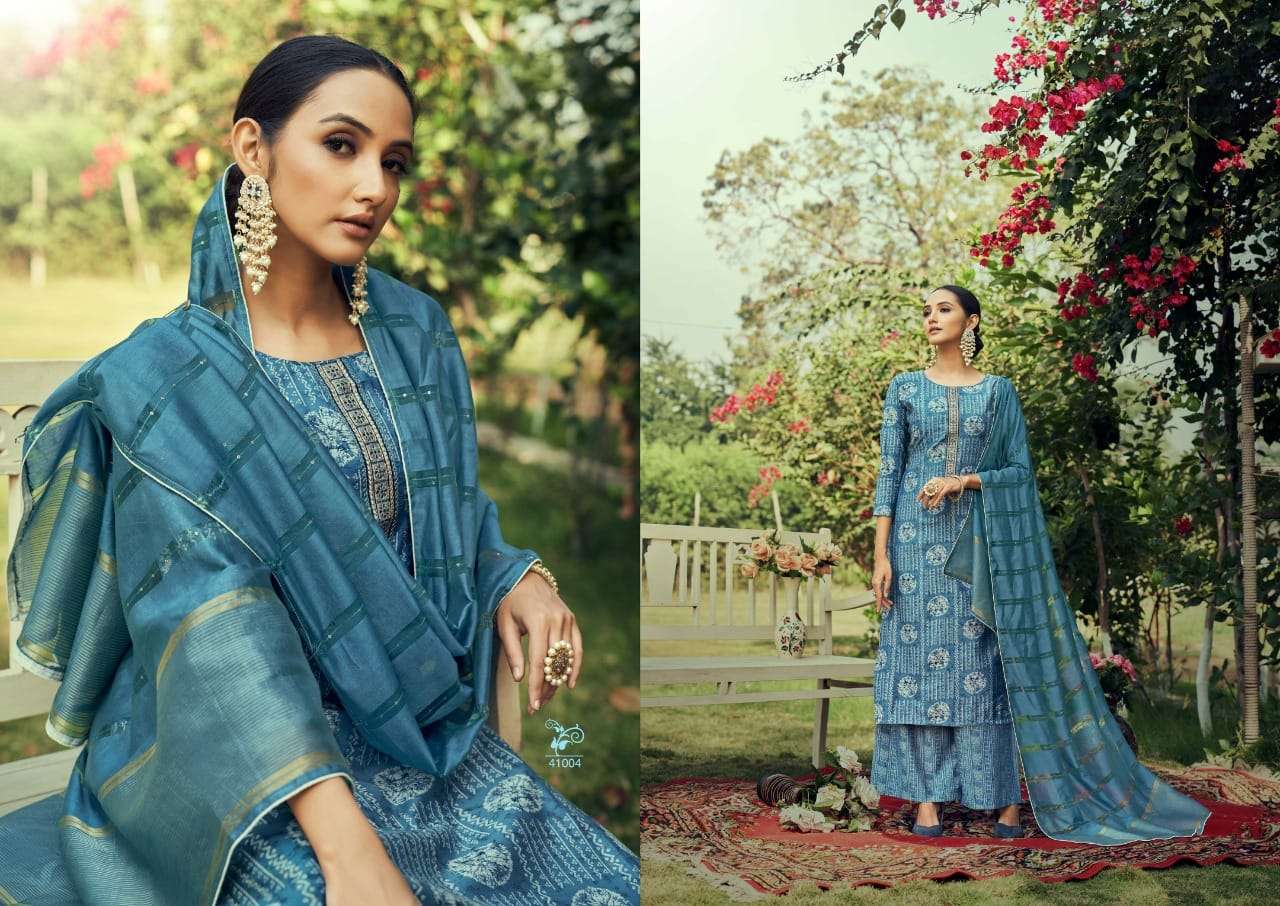 Top: Viscose Chanderi all over Discharge print with Gold foil and coding embroidery. Bottom : Viscose Chanderi all over Discharge print. Cut: 3 mts aprx. Dupatta : Viscose Box dupatta with Sequins work and Thread work. Cut: 2.25 mts 🔸Pcs : 8⃣ 🔸Rate:8️⃣7️⃣1️⃣/- |