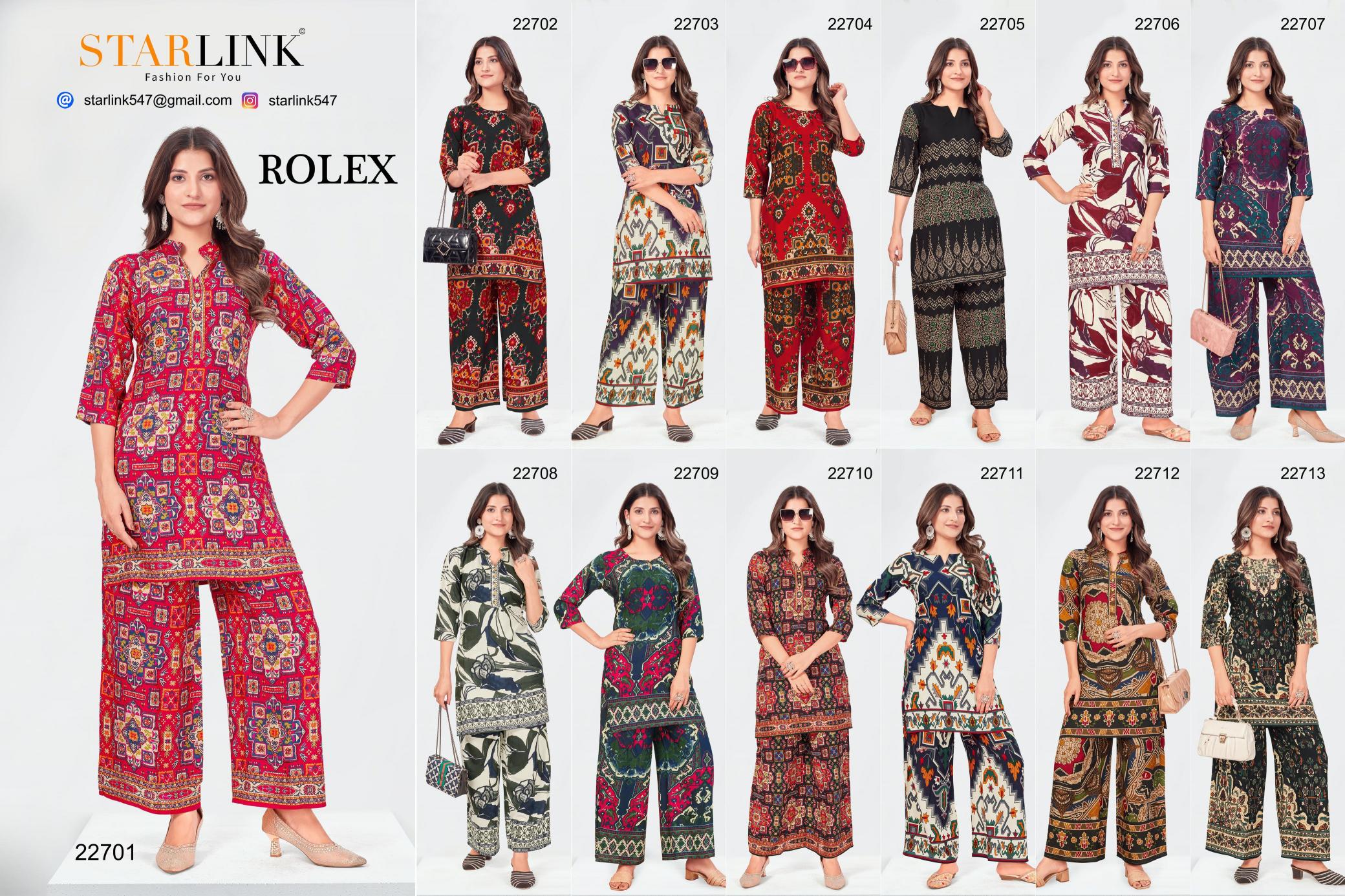 rolex by starlink rayon attractive look full stitch combo co-ord sets