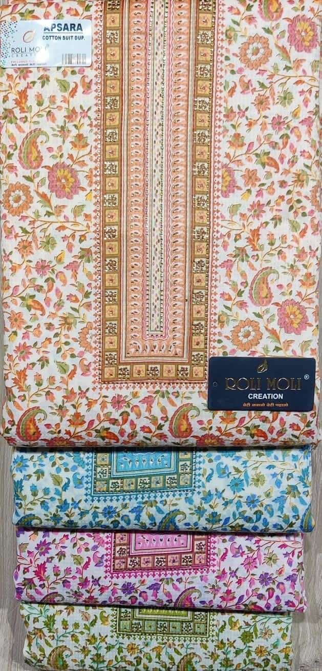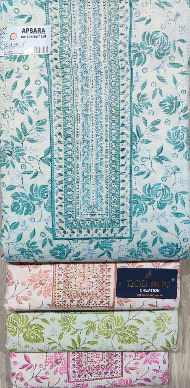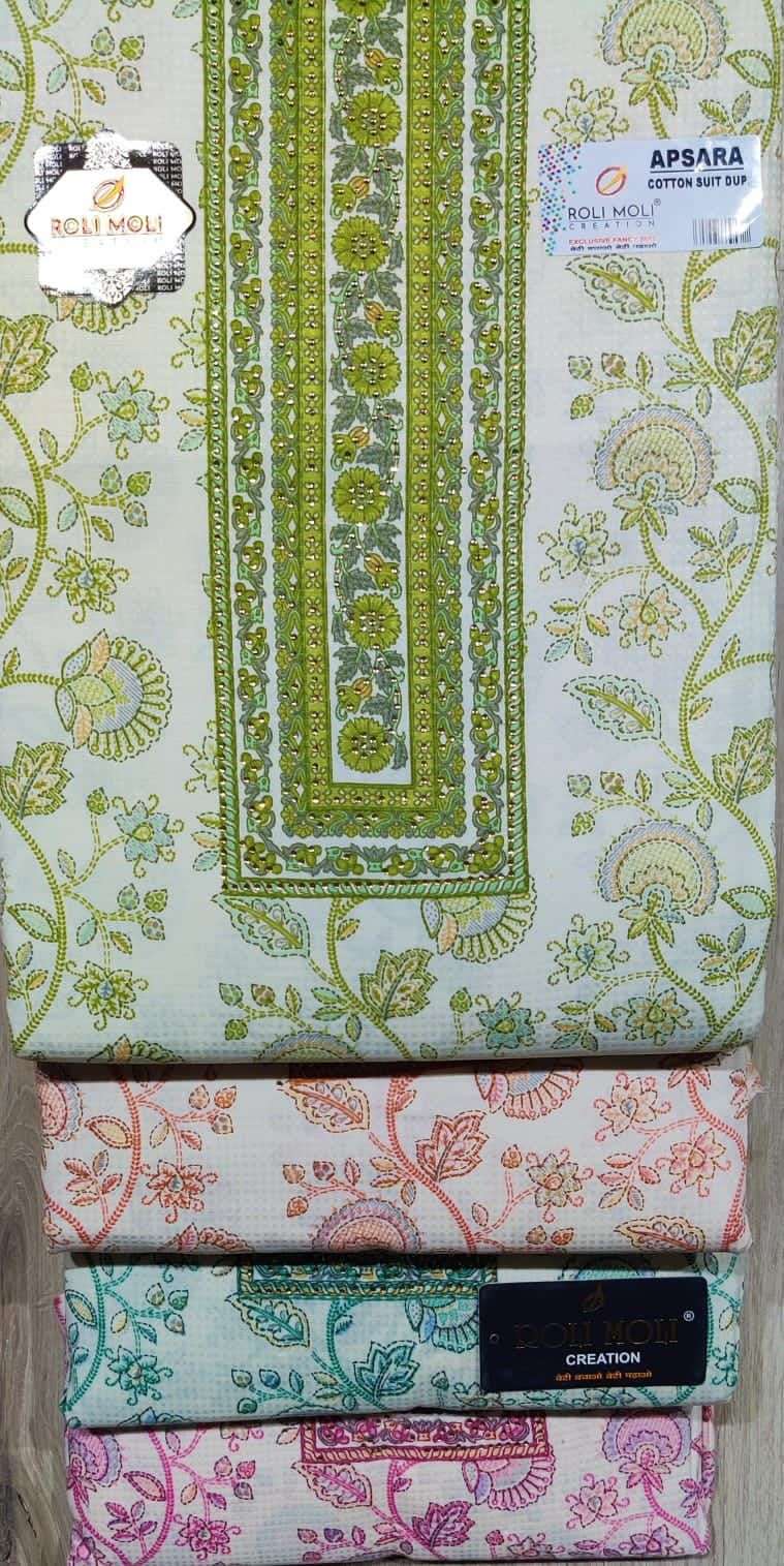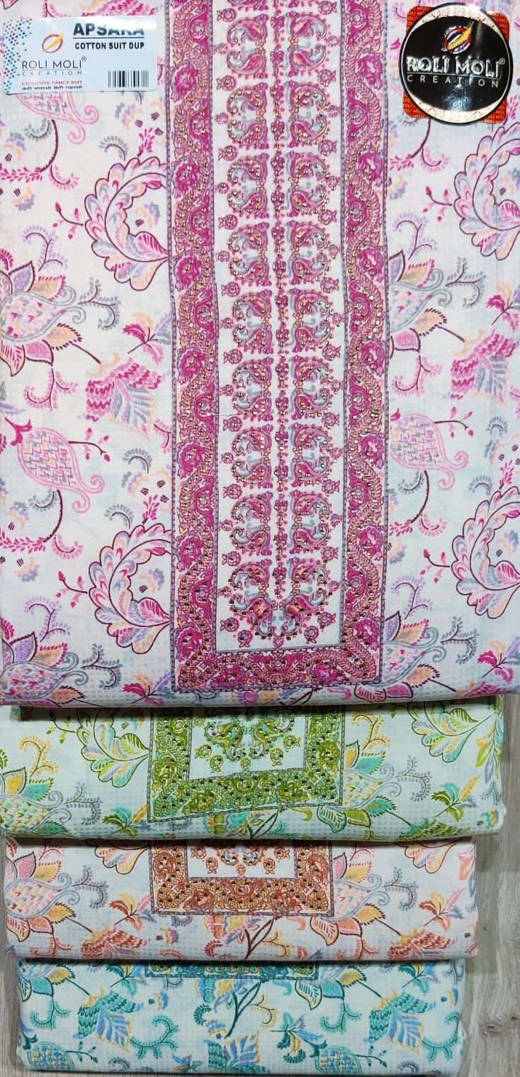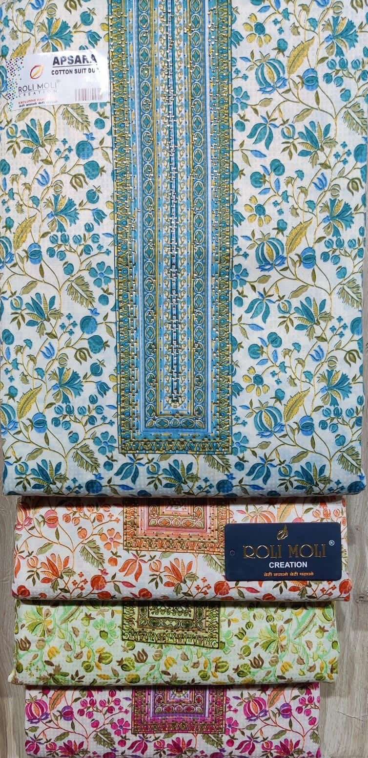 ROLI MOLI CREATION *🔸 🔸* APSARA 🔸* 🔸*2 chart 2 dzns mix in parcel * 🔸*Bundle packing * 💃Fabric Details:- 👚:- 2.50 mts approx (WITH ADDITIONAL WORK ) 👖:- *2:50 mts perfect *👌 🧣:- *2:10 mts approx Cotton dupatta * 🔸RATE 295 |