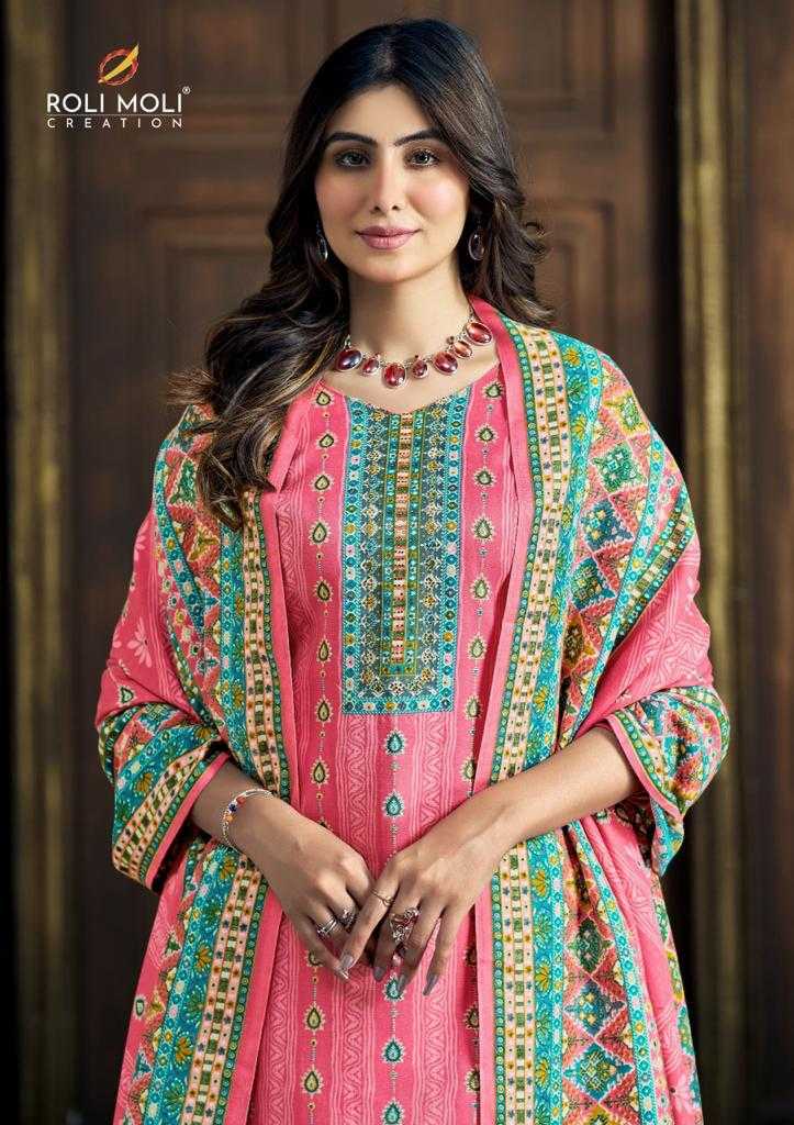 Roli Moli Creation Presents Latest Collection Launched on 08-11-2023. Presenting Beautiful collection of 6 PCS with Unstitched .