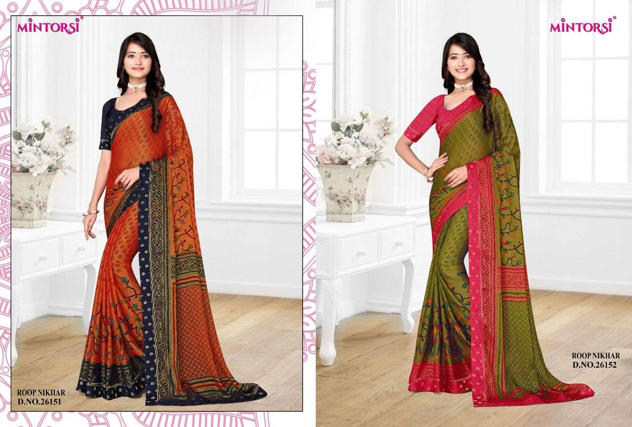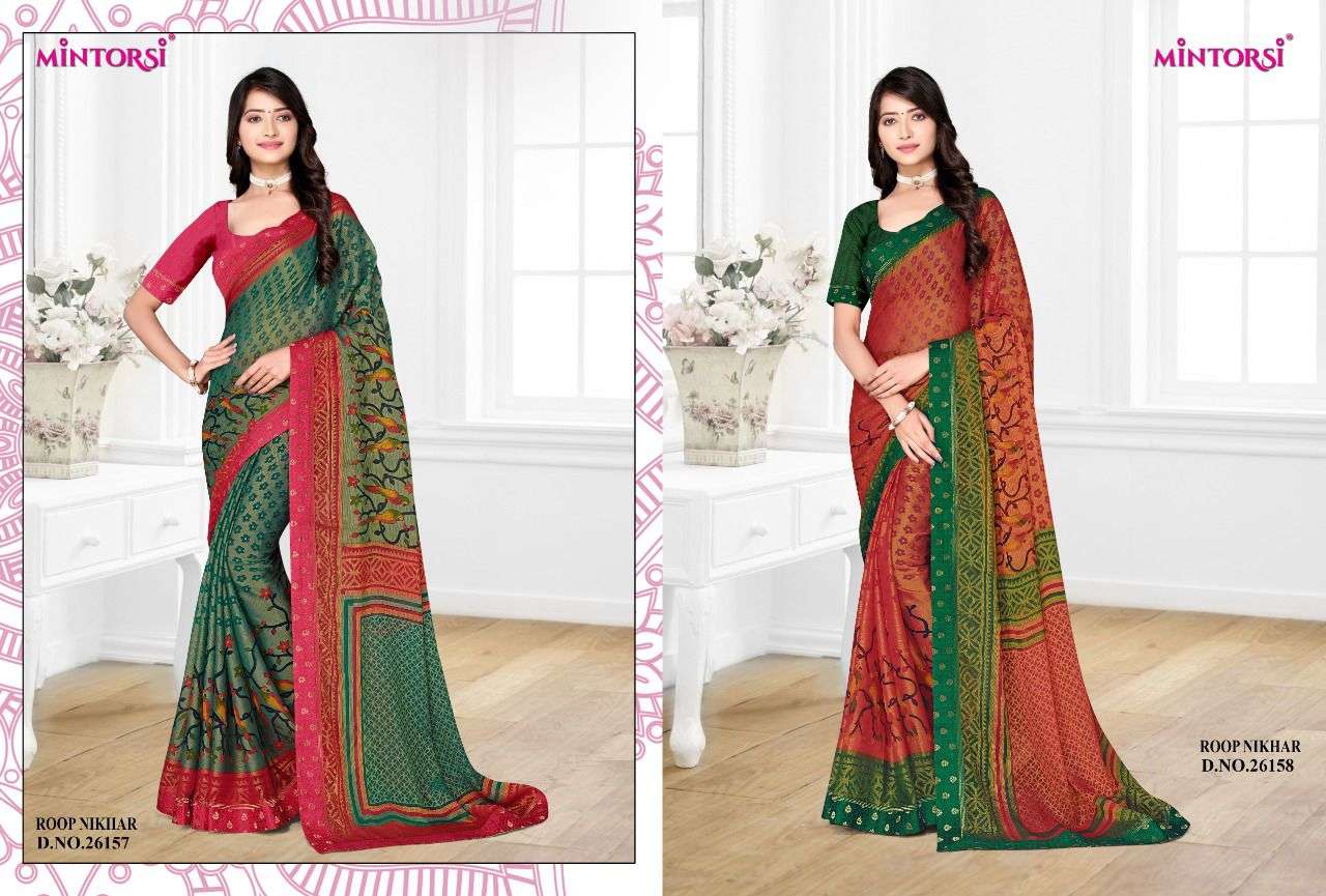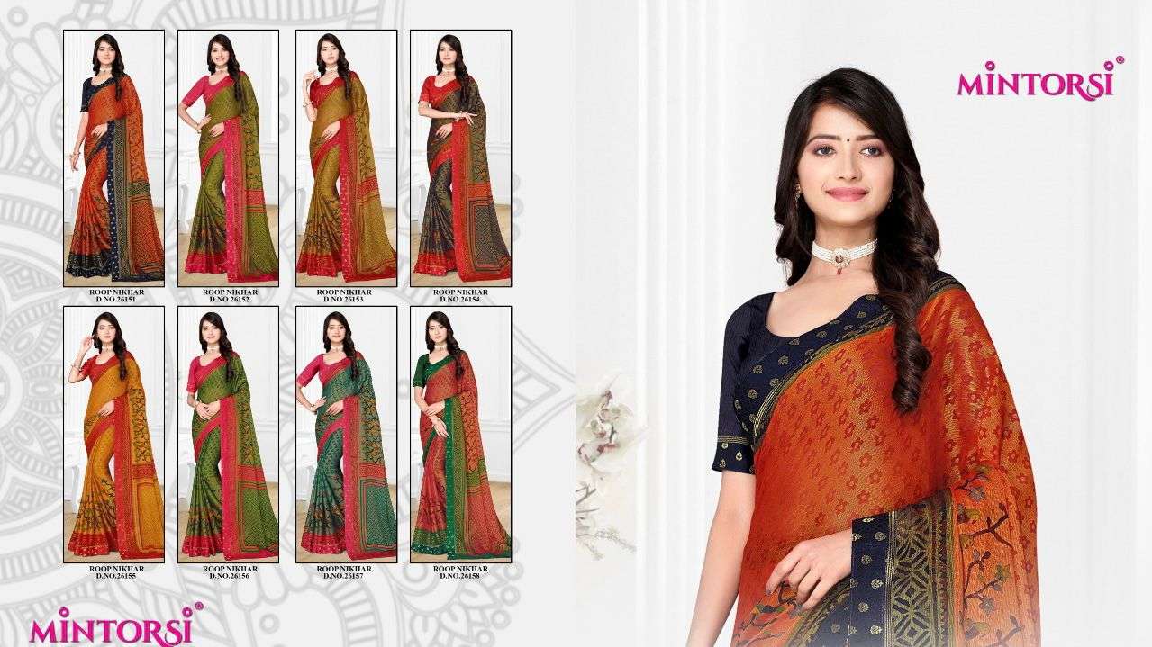 roop nikhar by mintorsi chiffon brasso printed sarees