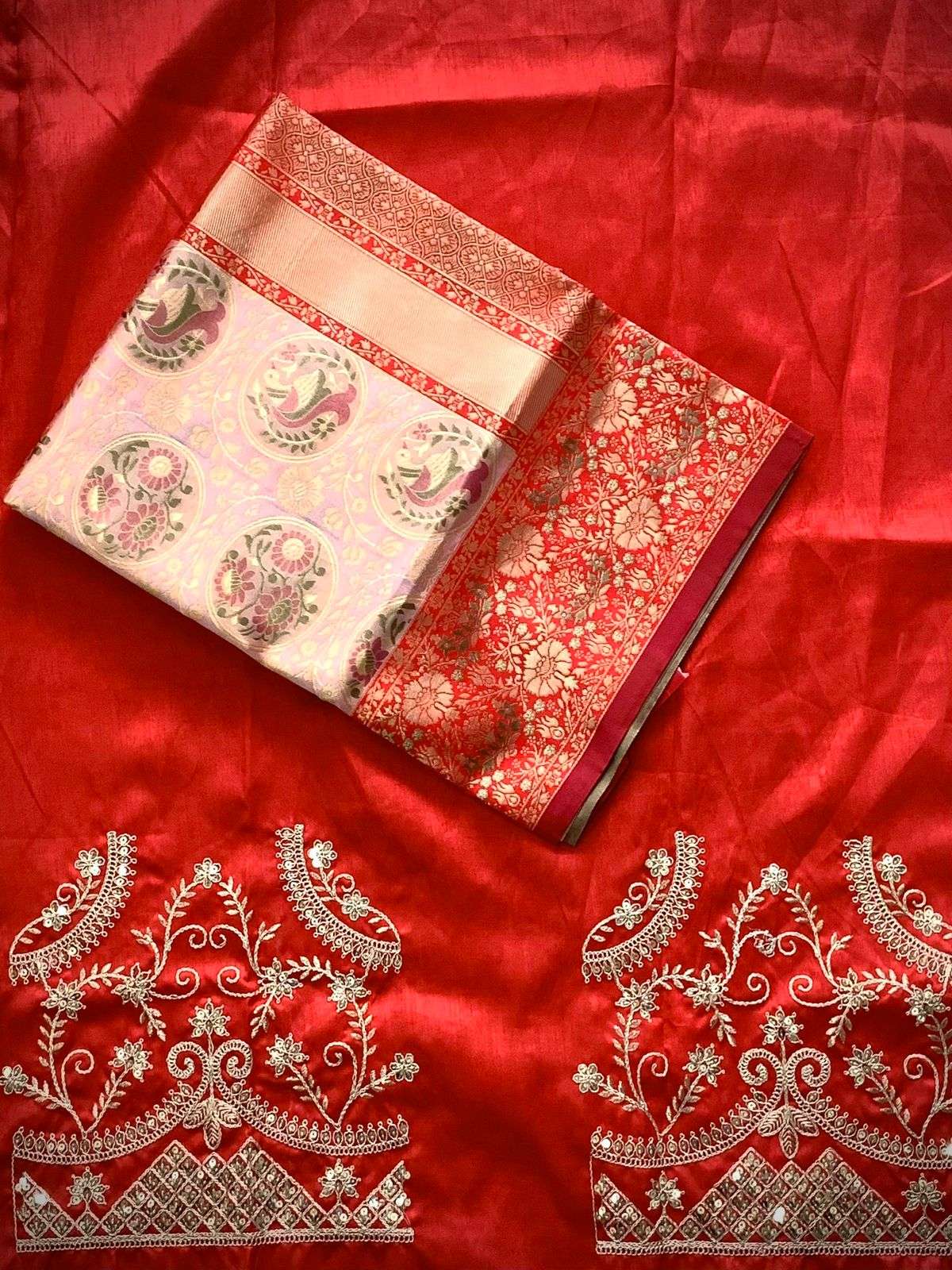 Roopam 10 Banarasi Weaving Silk Saree & Blouse Satin Banglory with Heavy Embroidery work