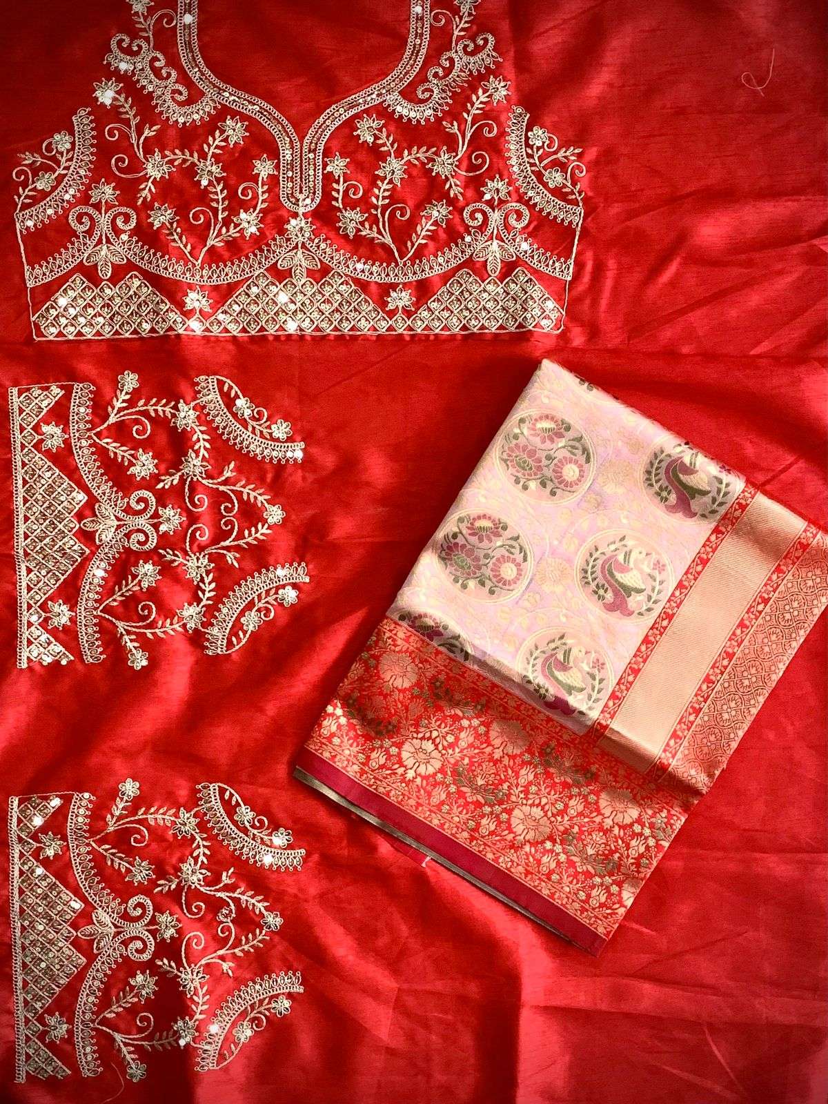 Roopam 10 Banarasi Weaving Silk Saree & Blouse Satin Banglory with Heavy Embroidery work |