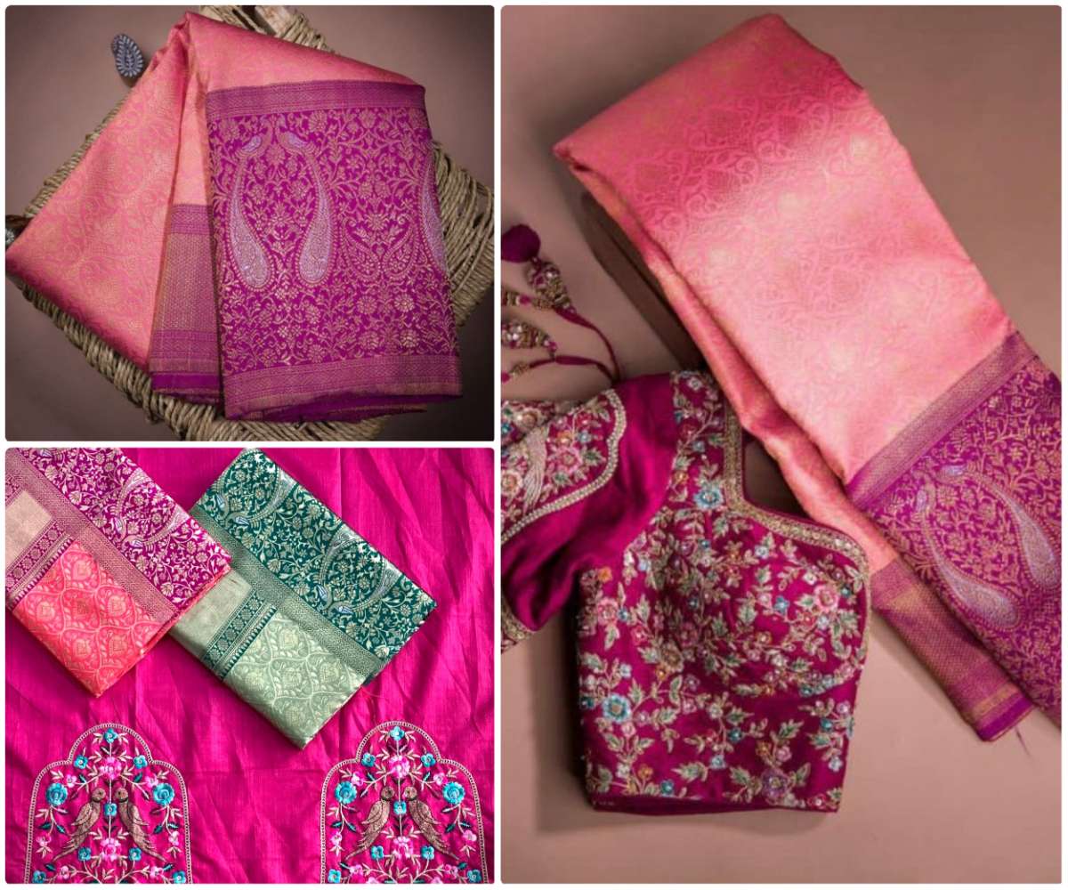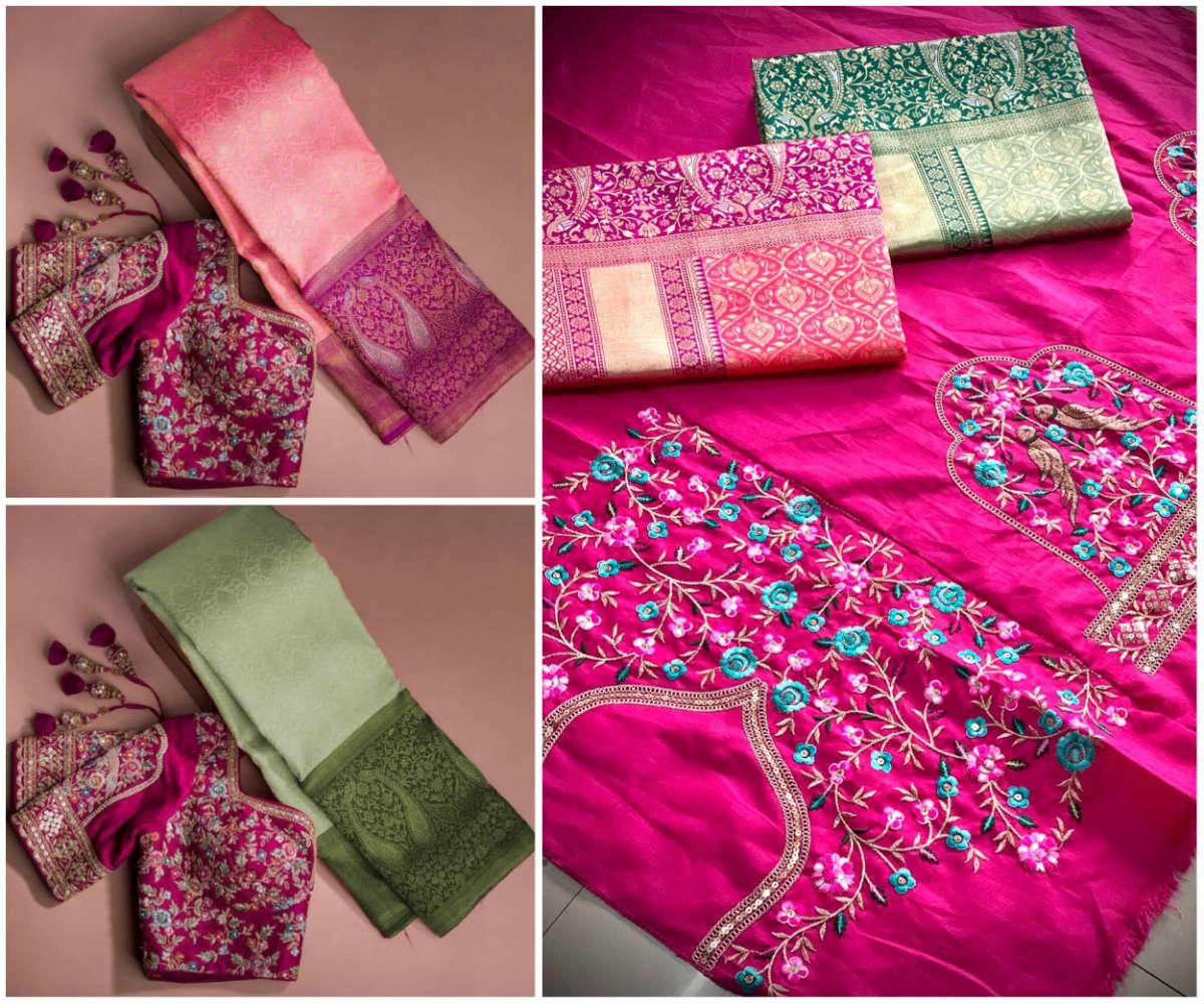 Roopam Banarasi Weaving Silk Saree Blouse Satin Banglory with Heavy Embroidery work |