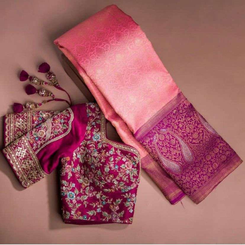 Roopam 2 Banarasi Weaving Silk Saree Blouse Satin Banglory with Heavy Embroidery work