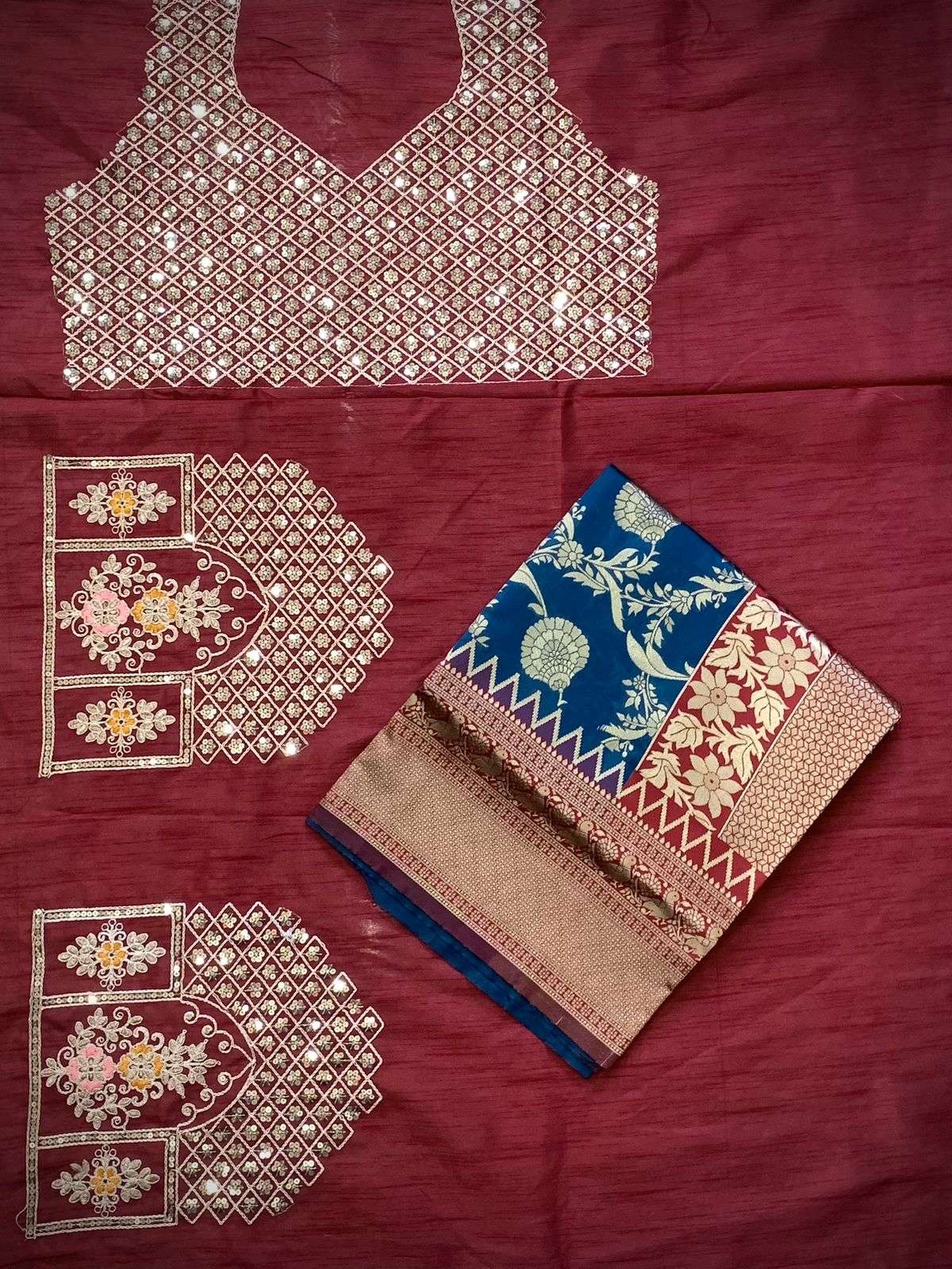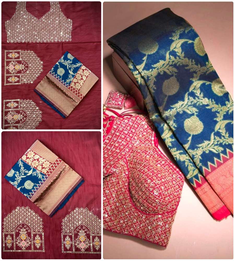 Roopam 6 Banarasi Weaving Silk Saree Blouse Satin Banglory with Heavy Embroidery work |