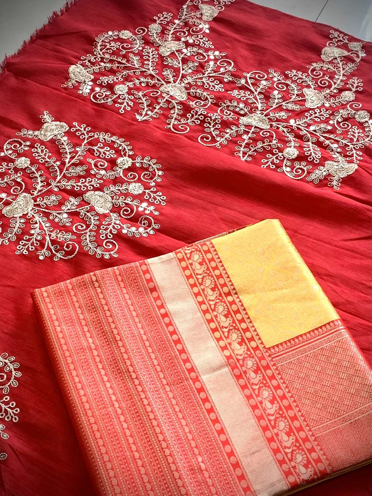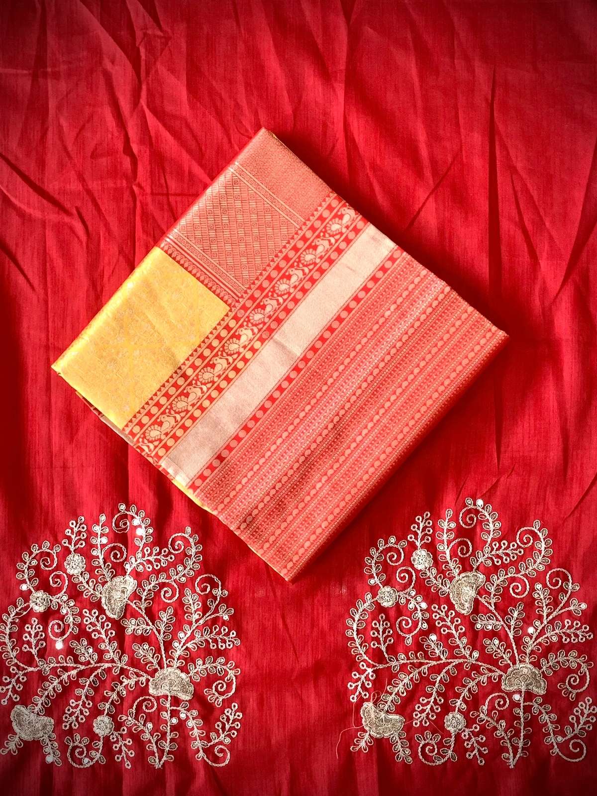 Roopam 7 Banarasi Weaving Silk Saree Blouse Satin Banglory with Heavy Embroidery work