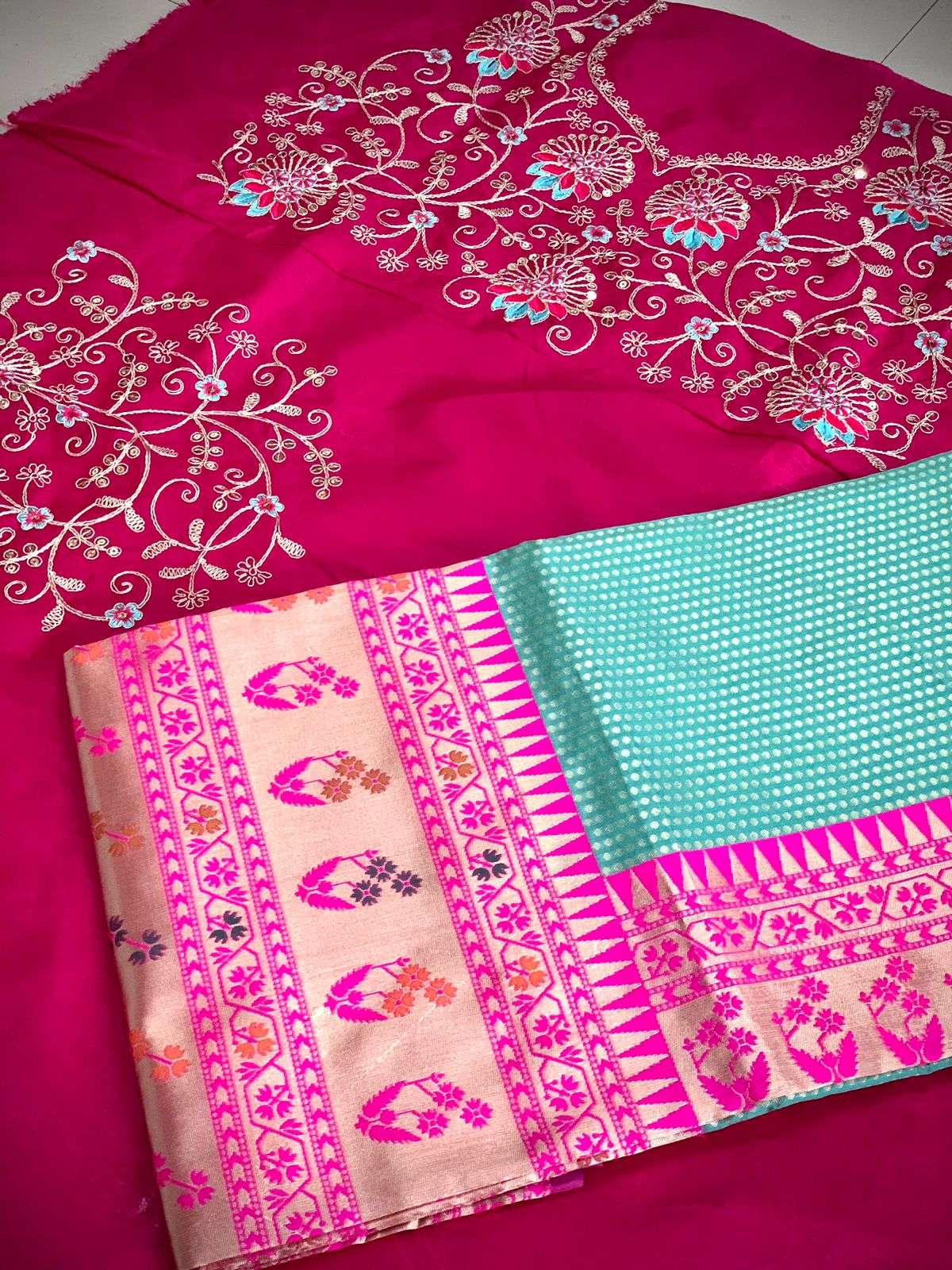 Roopam 9 Banarasi Weaving Silk Saree & Blouse Satin Banglory with Heavy Embroidery work