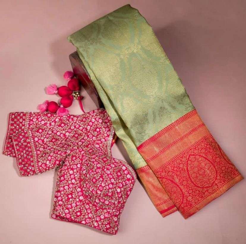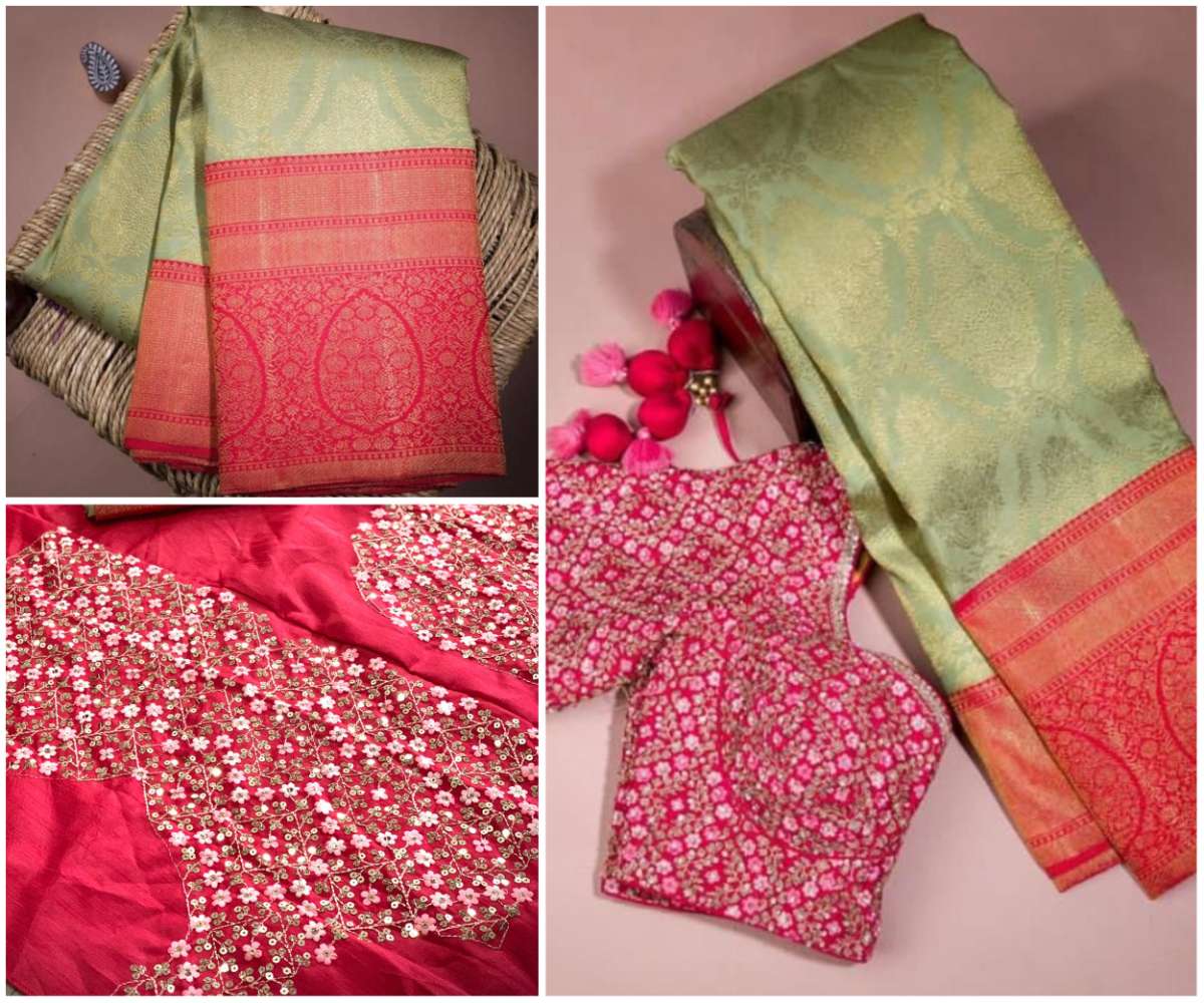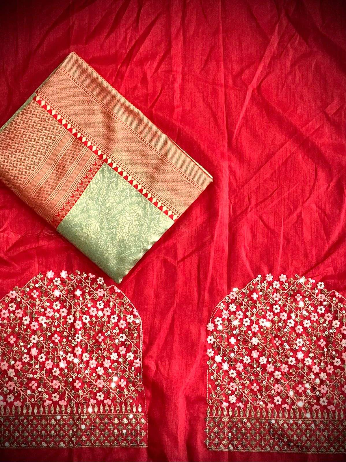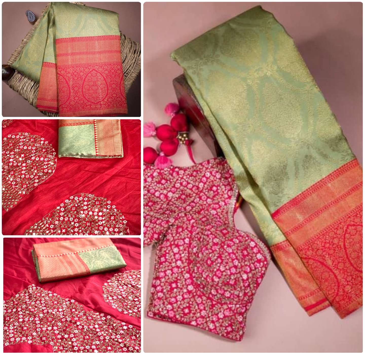 Roopam Banarasi Weaving Silk Saree Blouse Satin Banglory with Heavy Embroidery work |