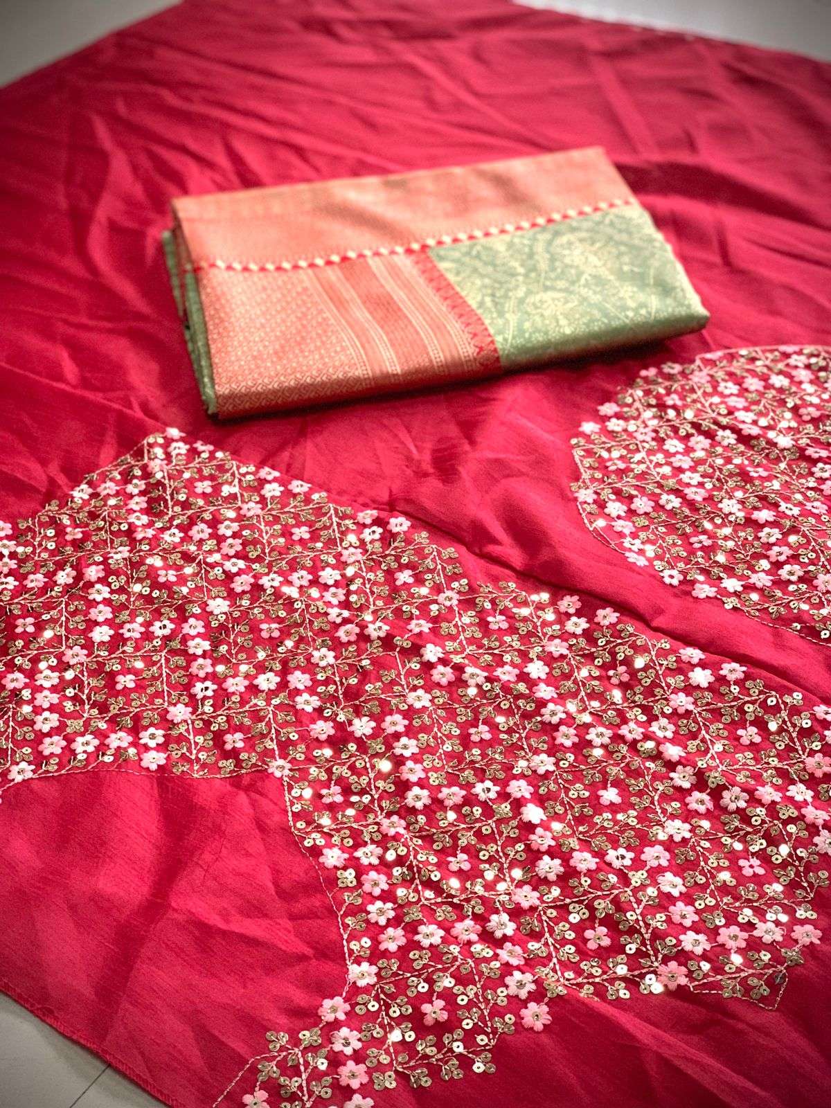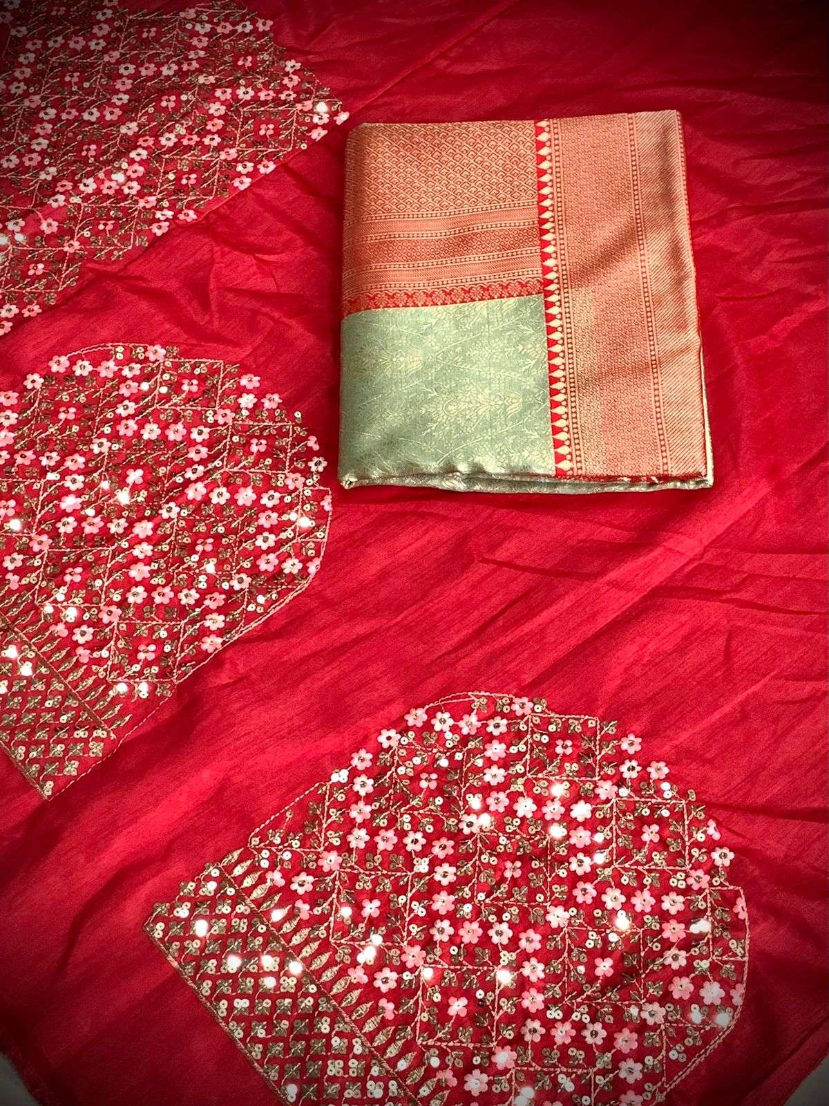 Roopam Banarasi Weaving Silk Saree Blouse Satin Banglory with Heavy Embroidery work