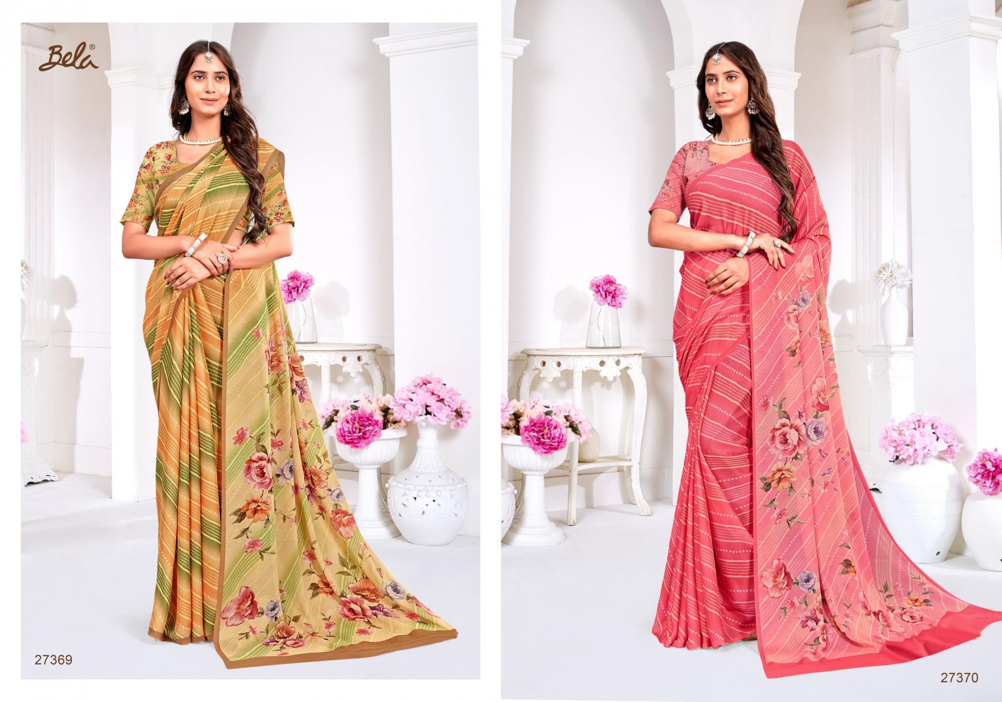 BELA SAREES NEW LAUNCHING CATALOG NAME - ROSALEE FABRIC NAME - GEORGETTE CREP DIGITAL PRINT RATE :- 1135/- |