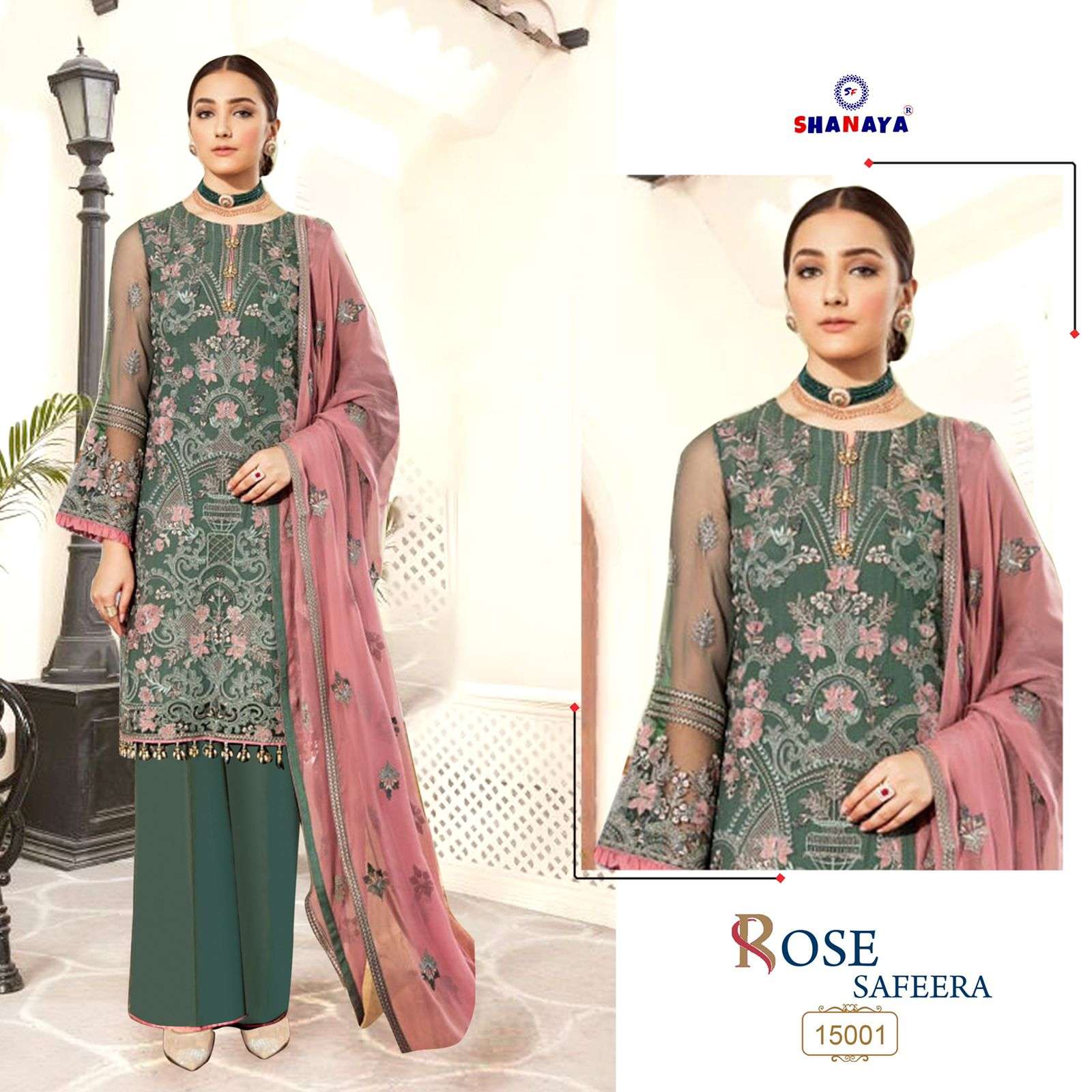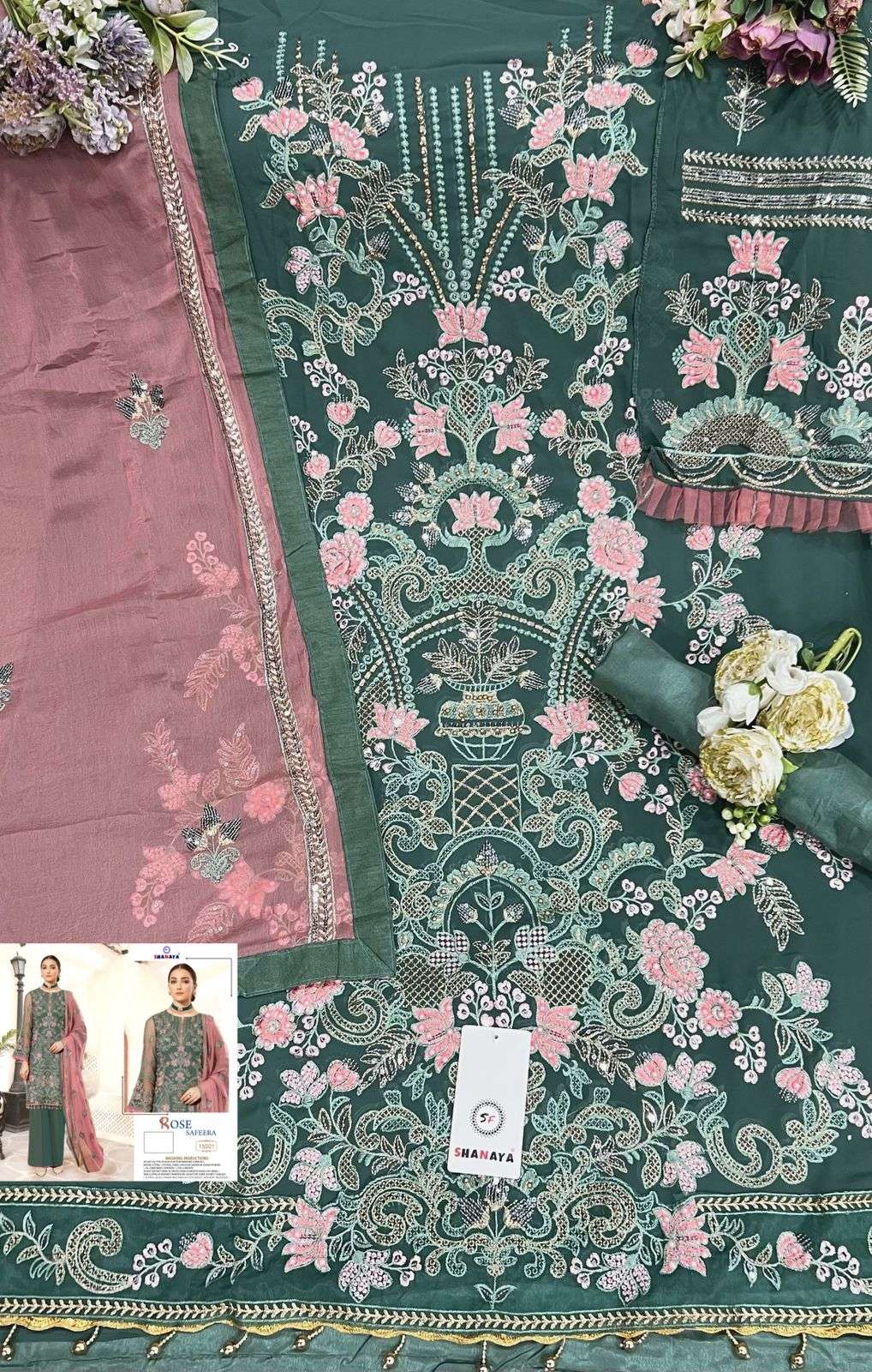 rose safeera by shanaya georgette pakistani suit supplier