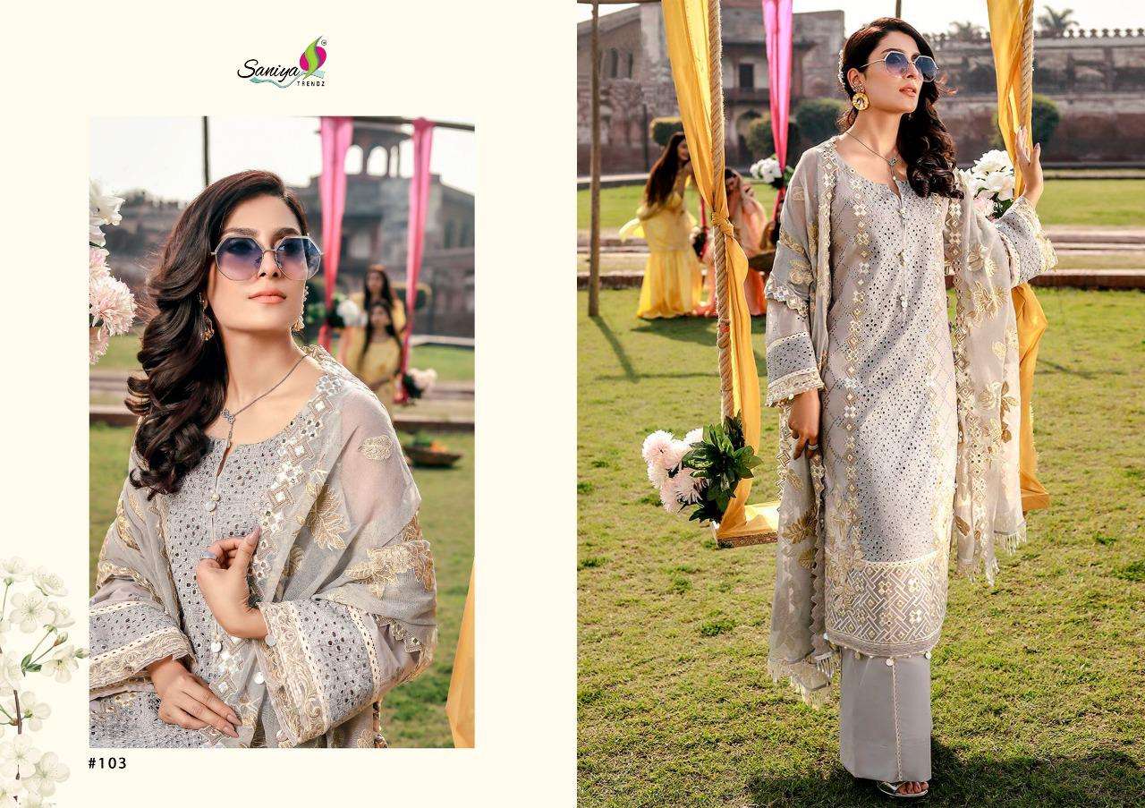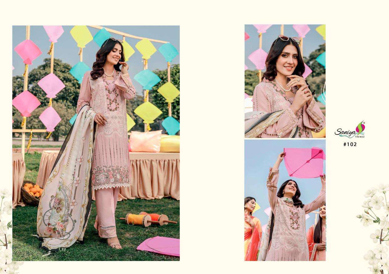 rouche vol 4 by saniya trendz cambric embroidery pakistani salwar kameez