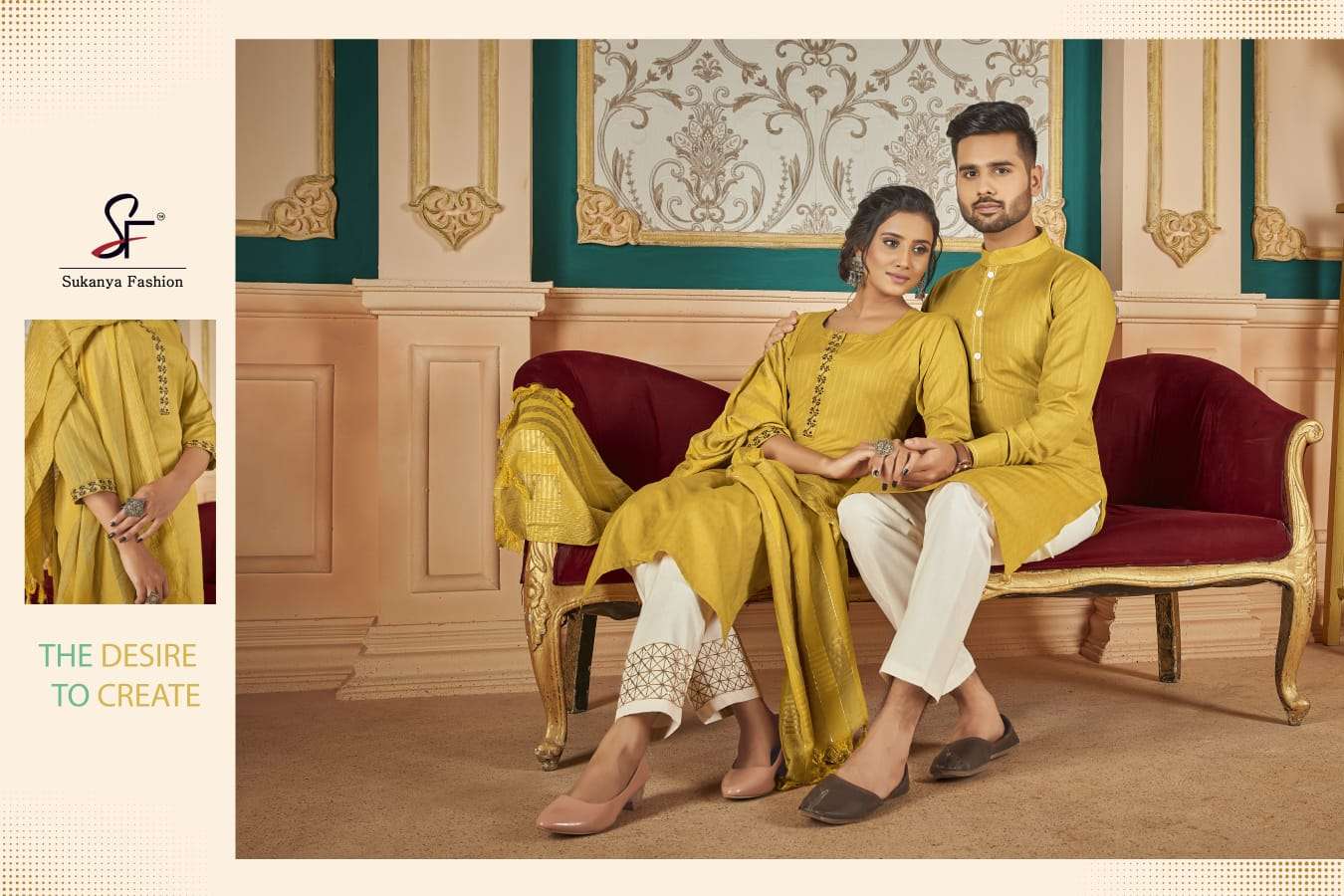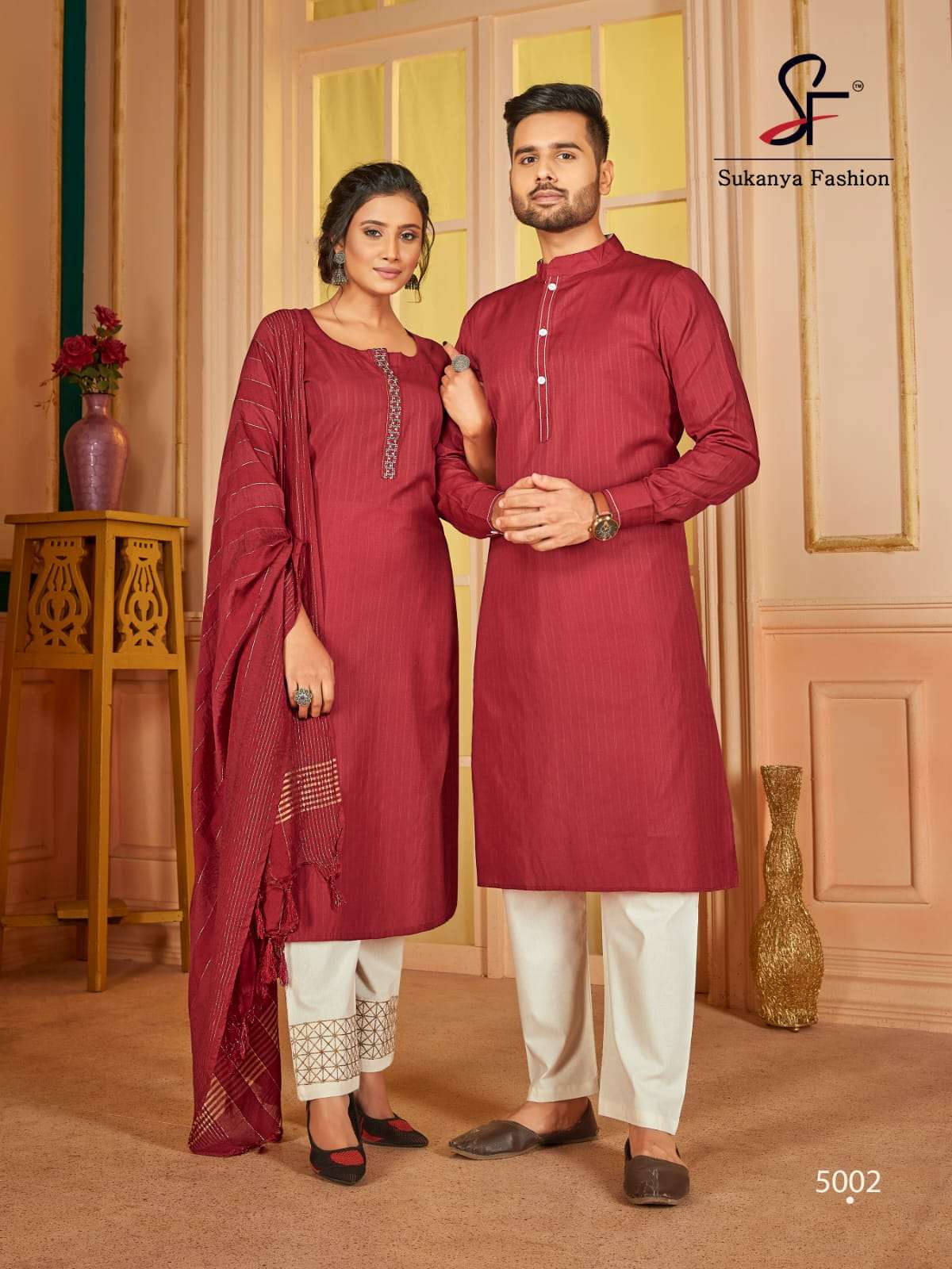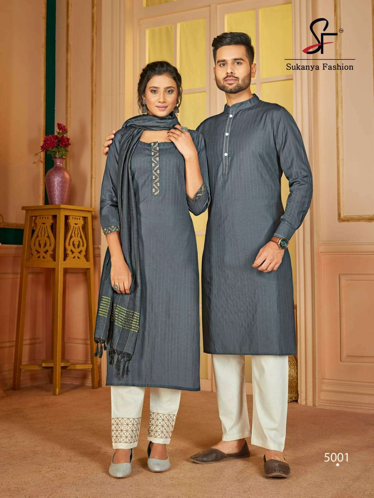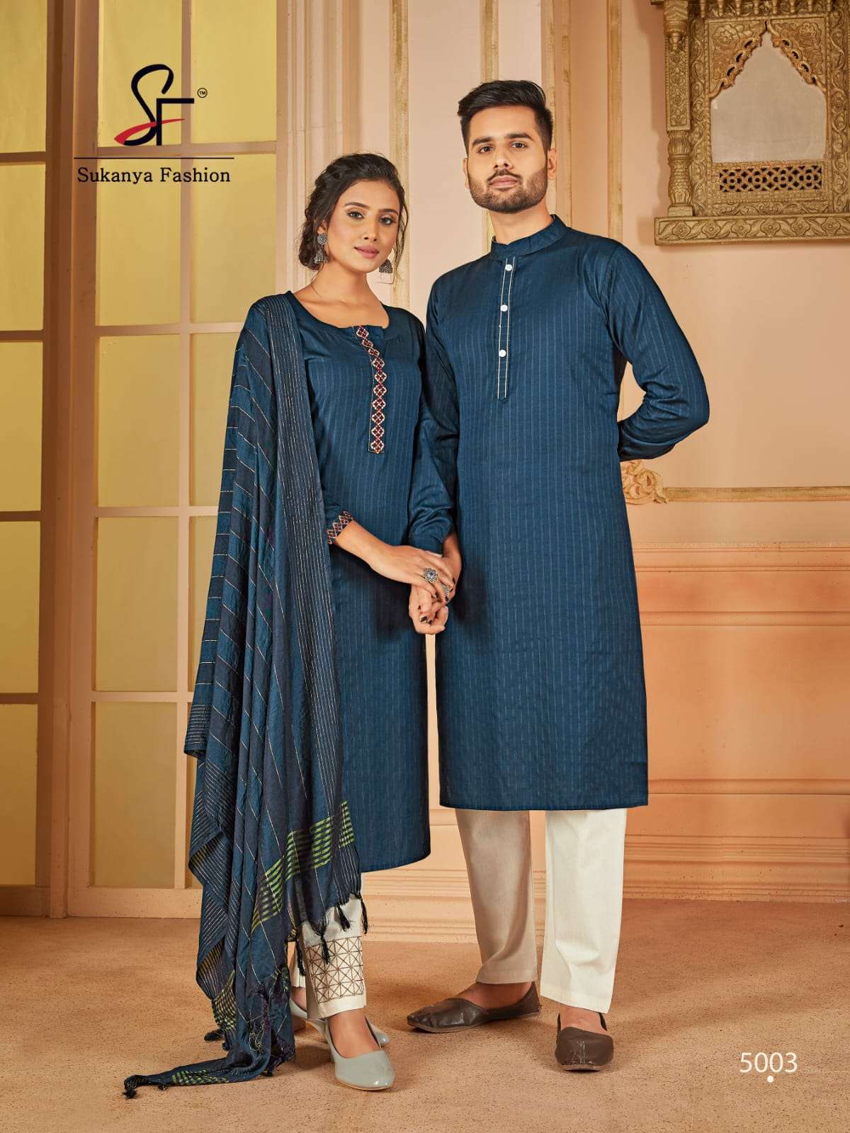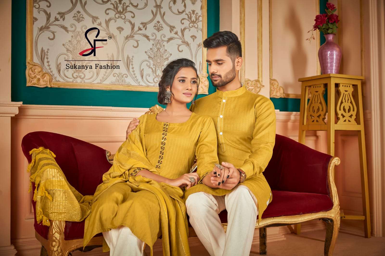 Royal Couple Vol 5 By Sukanya Ladies Readymade Suit With Men Kurta Payjama