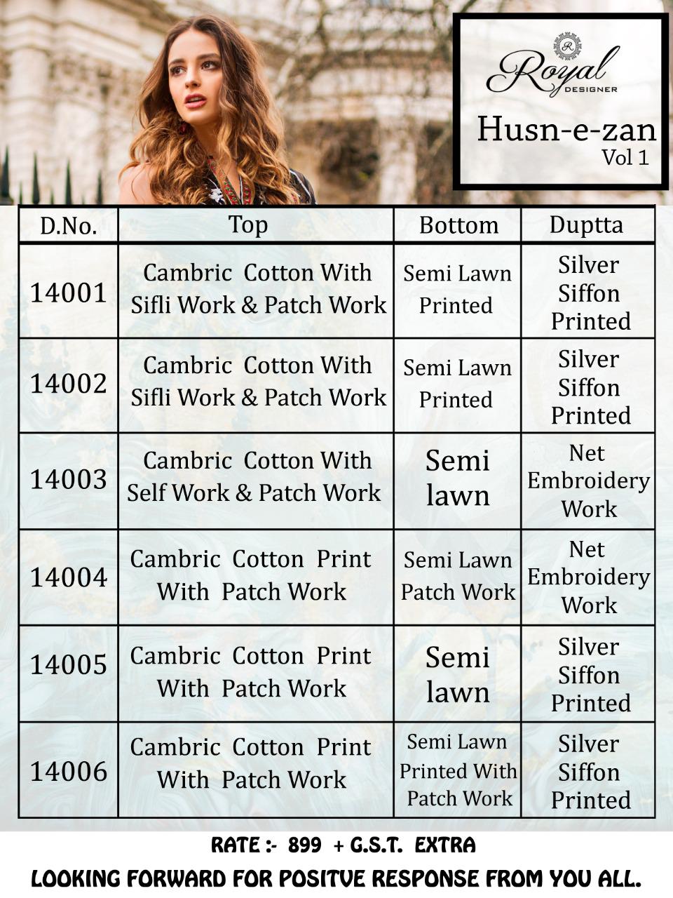Royal Designer Husn E Zan Vol 1 Cambric Cotton Salwar Suit Pakistani Concept