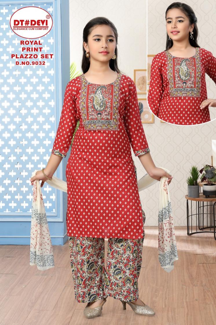 royal print plazzo set by dt devi 9032 cotton readymade fancy combo set kids suits